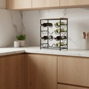Elegancki stojak na wino z drewnianym blatem to stylowy element każdego wnętrza. Przechowuj nawet 12 butelek w kompaktowej formie. Doskonały na kolekcję ulubionych win Blat do kieliszków i ozdób Pojemność przy niewielkich wymiarach Szybki montaż