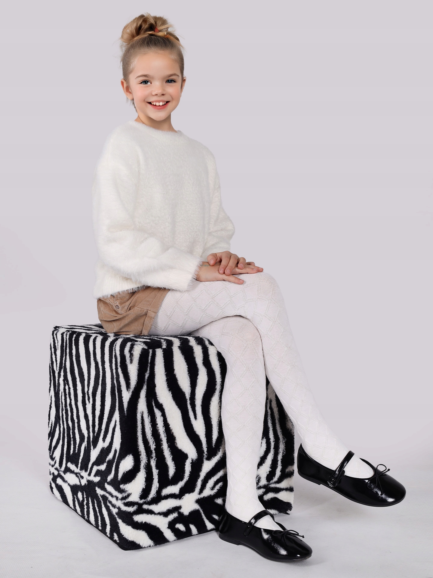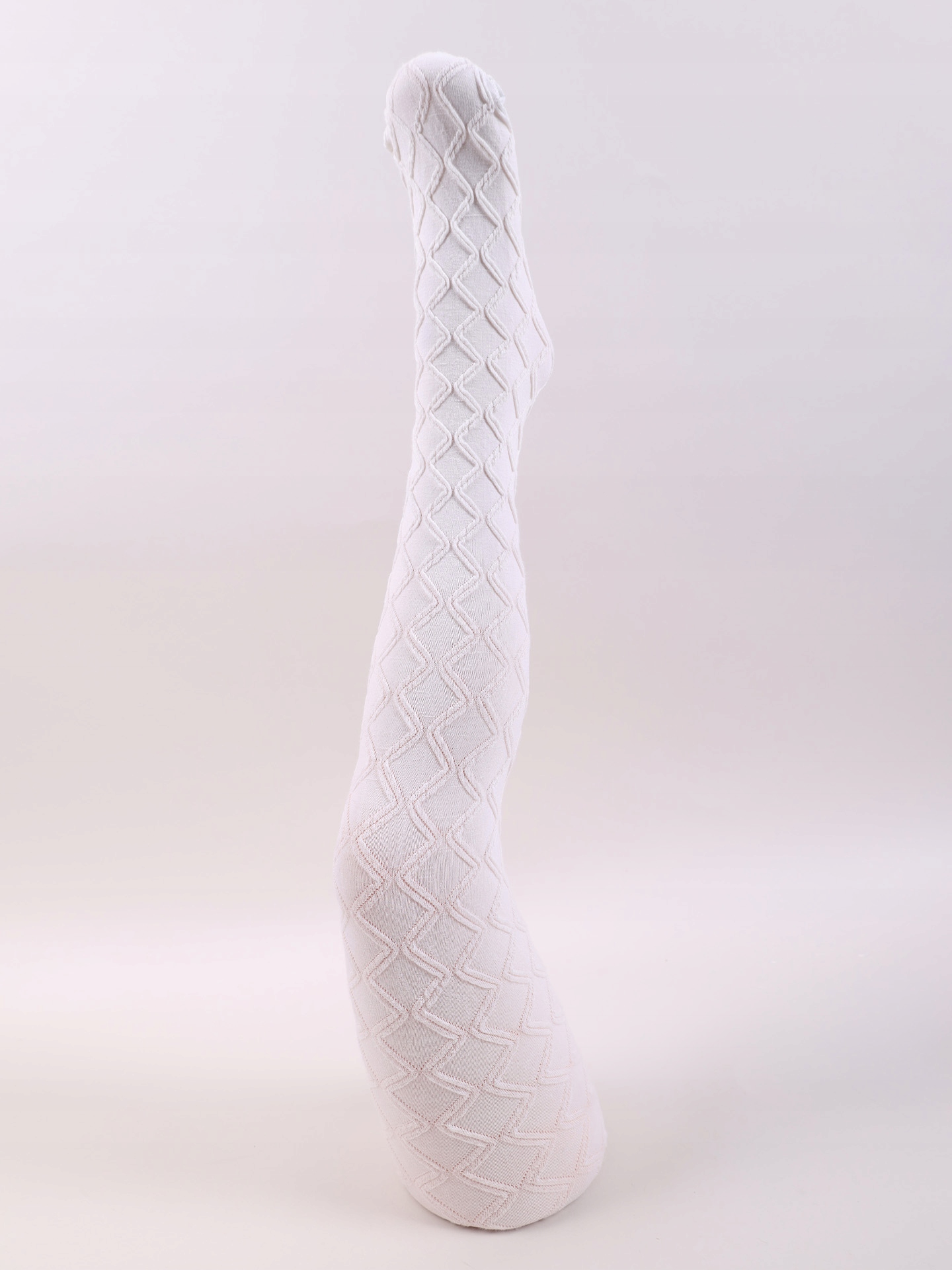 Bawełniane rajstopy dziewczęce ze wzorem waflowym ecru