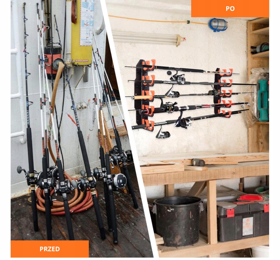 Ten stojak to prosty, ale niezwykle funkcjonalny element wyposażenia, który natychmiast uporządkuje Twoje miejsce do przechowywania wędek i zabezpieczy je przed uszkodzeniami.