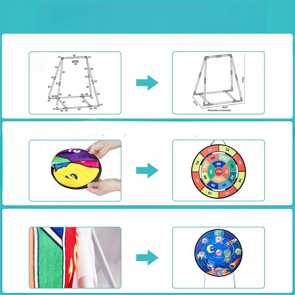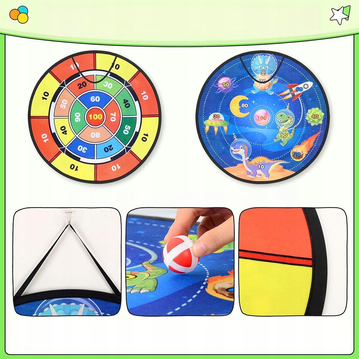 dwustronna tarcza do rzutek o średnicy 29 cali (73 cm) oferuje dwie unikalne gry w jednym zestawie. Zawiera solidną podstawkę do gry na podłodze oraz haczyki do montażu na ścianie, zapewniające klasyczne wrażenia, dzięki czemu idealnie nadaje się do zabawy w pomieszczeniach lub na świeżym powietrzu. Dzieci mogą cieszyć się wszechstronną zabawą w dowolnym miejscu!