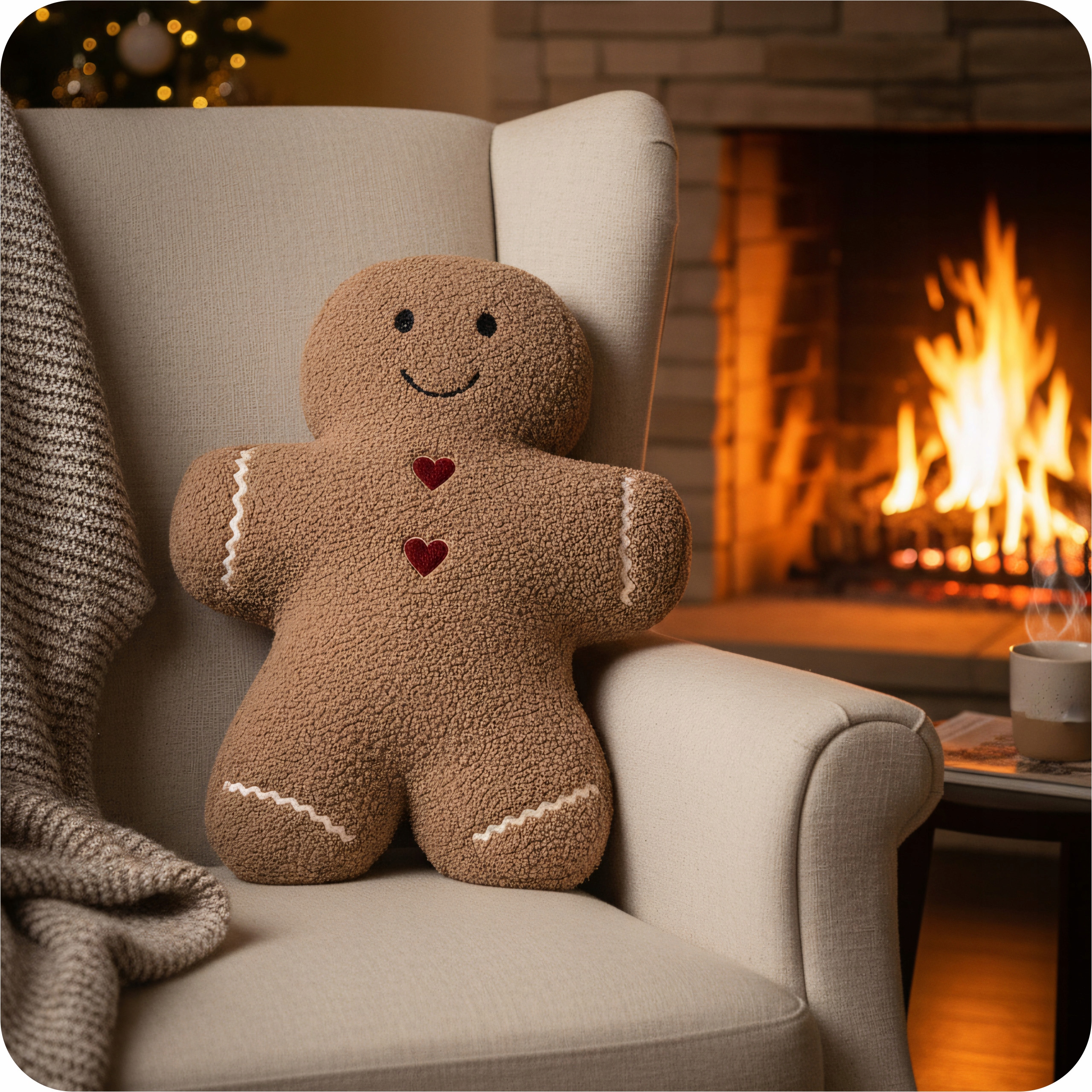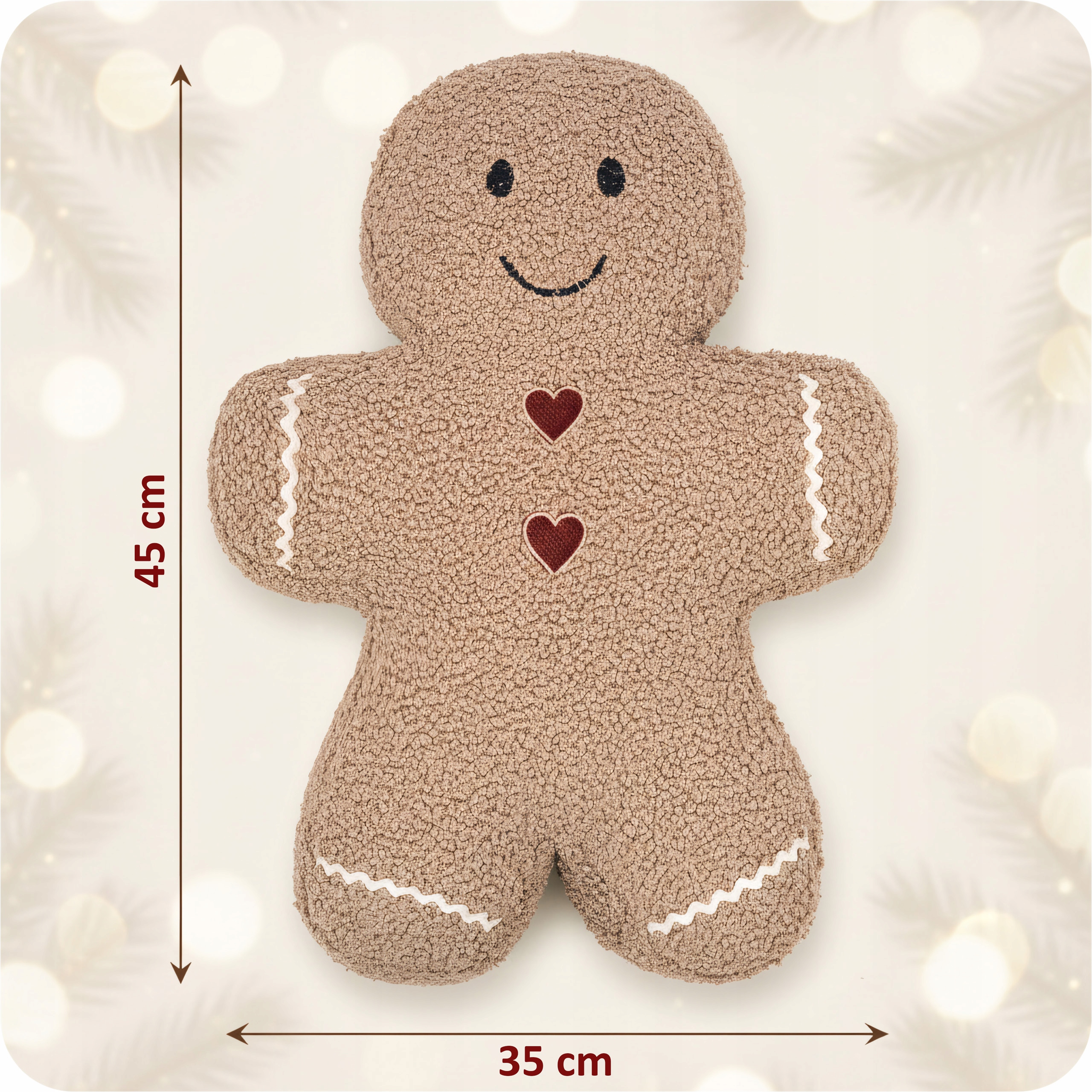 Ta poduszka w kształcie ludzika piernikowego zapewnia niezwykłą miękkość i przytulność, jakiej oczekujesz od dekoracji premium. Dzięki boucle i wypełnieniu z kulki silikonowanej, świetnie dopasowuje się do ciała i szybko wraca do formy. To idealny sposób na stworzenie ciepłej, świątecznej atmosfery w każdym wnętrzu.