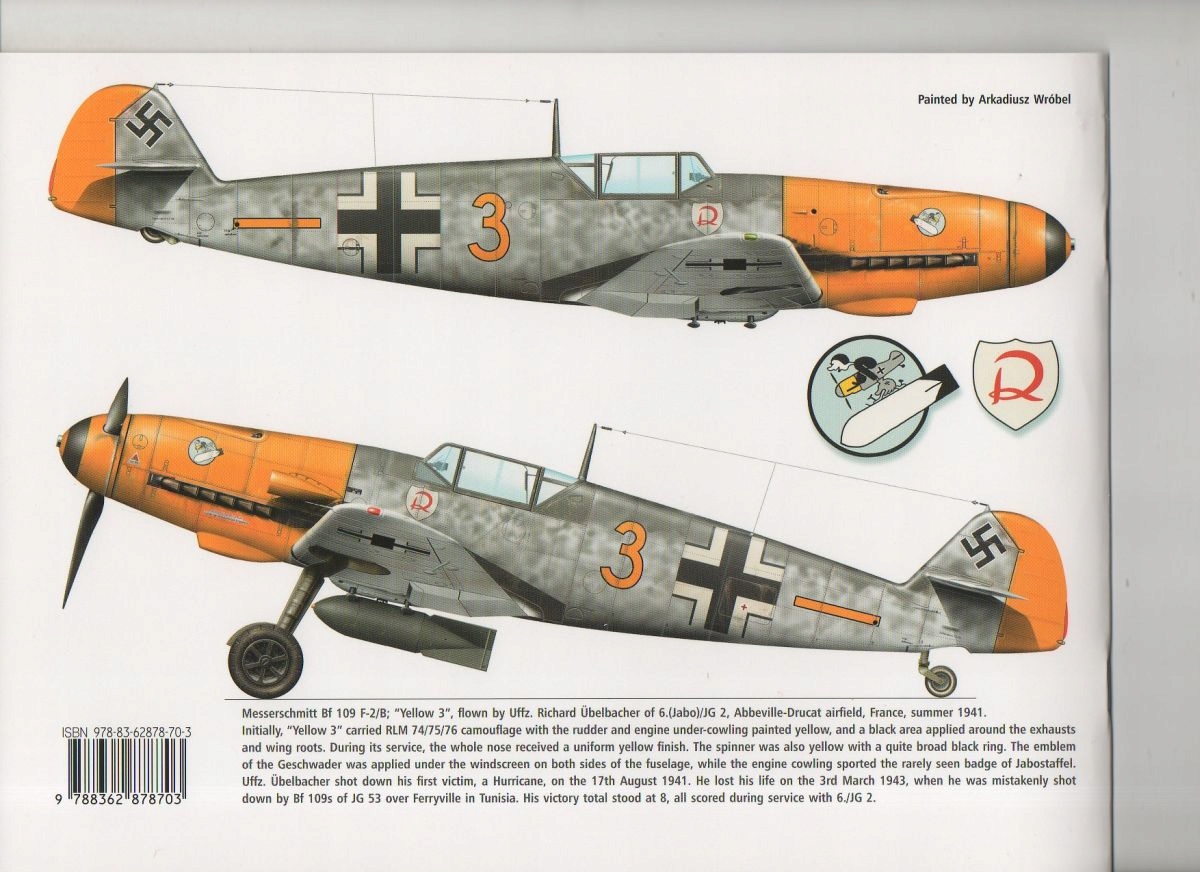 - Messerschmitt Bf 109 F-2/B; 'żółta 3', pilot: Uffz. Richard Übelbacher z 6.(Jabo)./JG 2, lotnisko Abbeville-Drucat, Francja, lato 1941 roku,