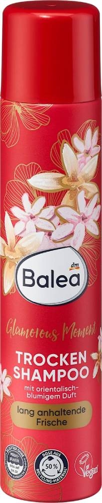 Balea Trocken Shampoo Glamours Moments 200 ml - Balea Trockenshampoo Glamorous Moments to innowacyjny suchy szampon, który łączy skuteczne odświeżanie włosów z luksusowym, zmysłowym zapachem. To kosmetyk 2w1 – ekspresowe odświeżenie i perfumowanie włosów w jednym produkcie.