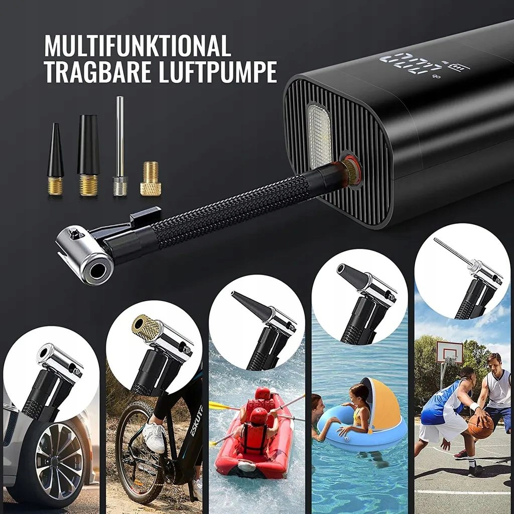 ✅ Wielofunkcyjny: Napompowuje, ładuje telefony i działa jako latarka awaryjna.