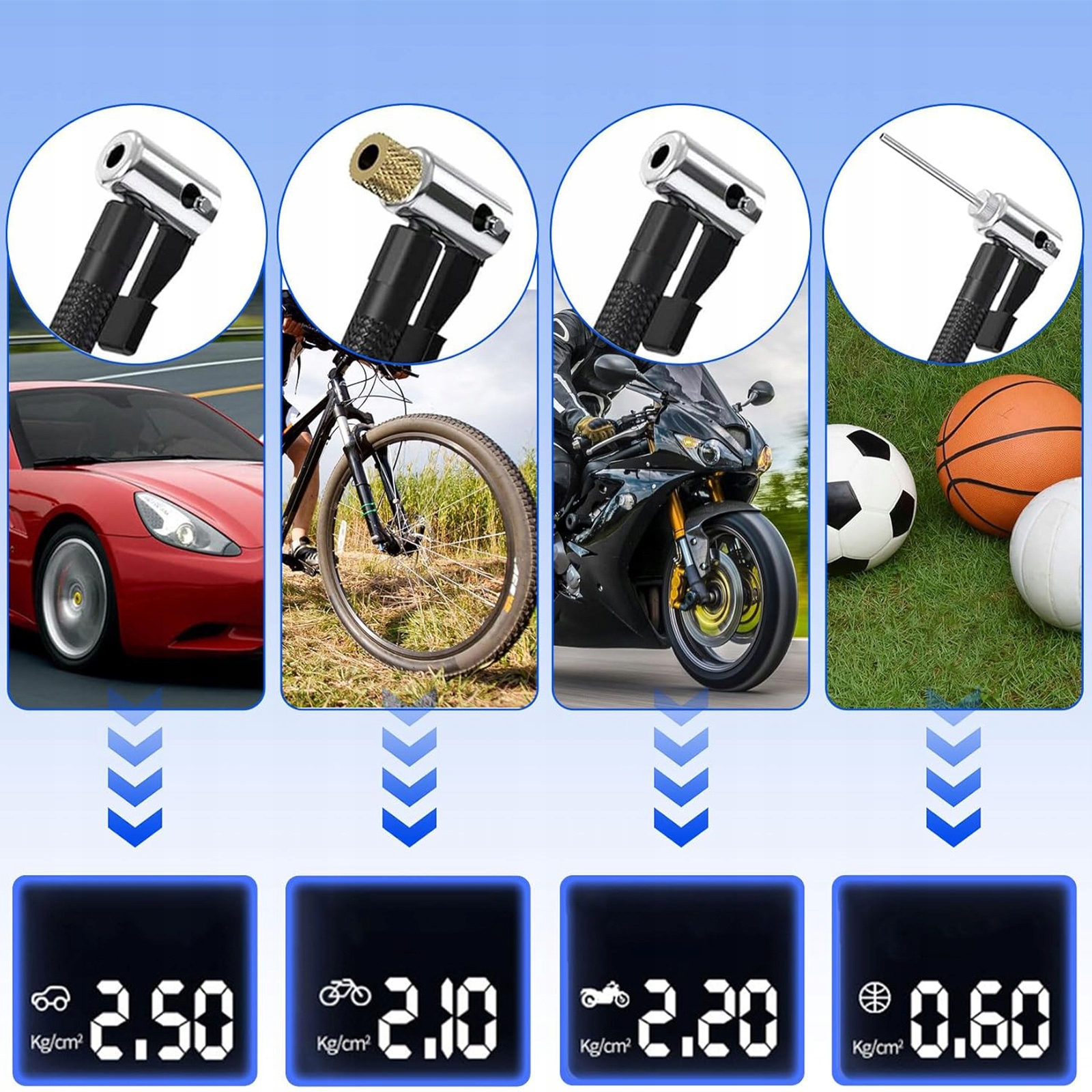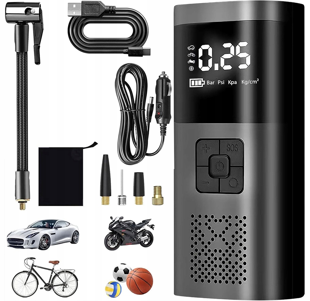 Ta akumulatorowa pompa powietrza jest wyposażona w samochodowy przewód zasilający. Nadaje się do samochodów, motocykli, rowerów, pierścieni pływackich, kajakarstwa, koszykówki, piłki nożnej itp., produkt łączy w sobie funkcjonalność i estetykę.