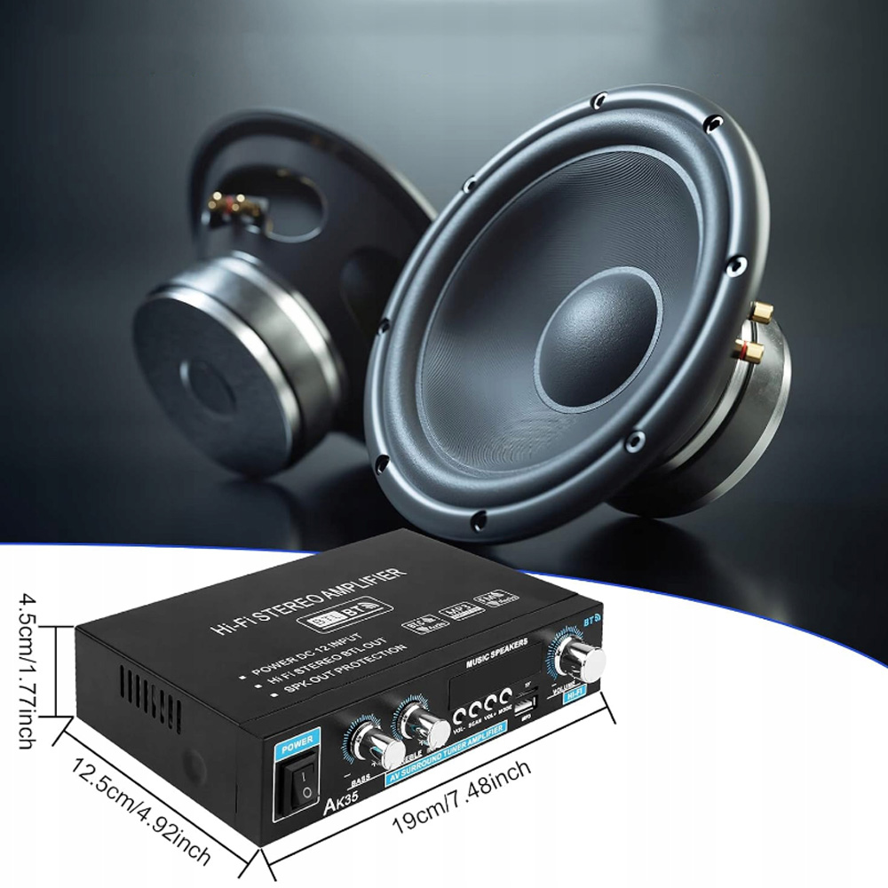 ✅[Двухканальный]: выходная мощность 2X50 Вт. вход постоянного тока 12 В, источник питания переменного тока 110-230 в, динамик 4-8 ом. С антенной, сигнал это лучше, и анти-помехоподавляющая способность сильна