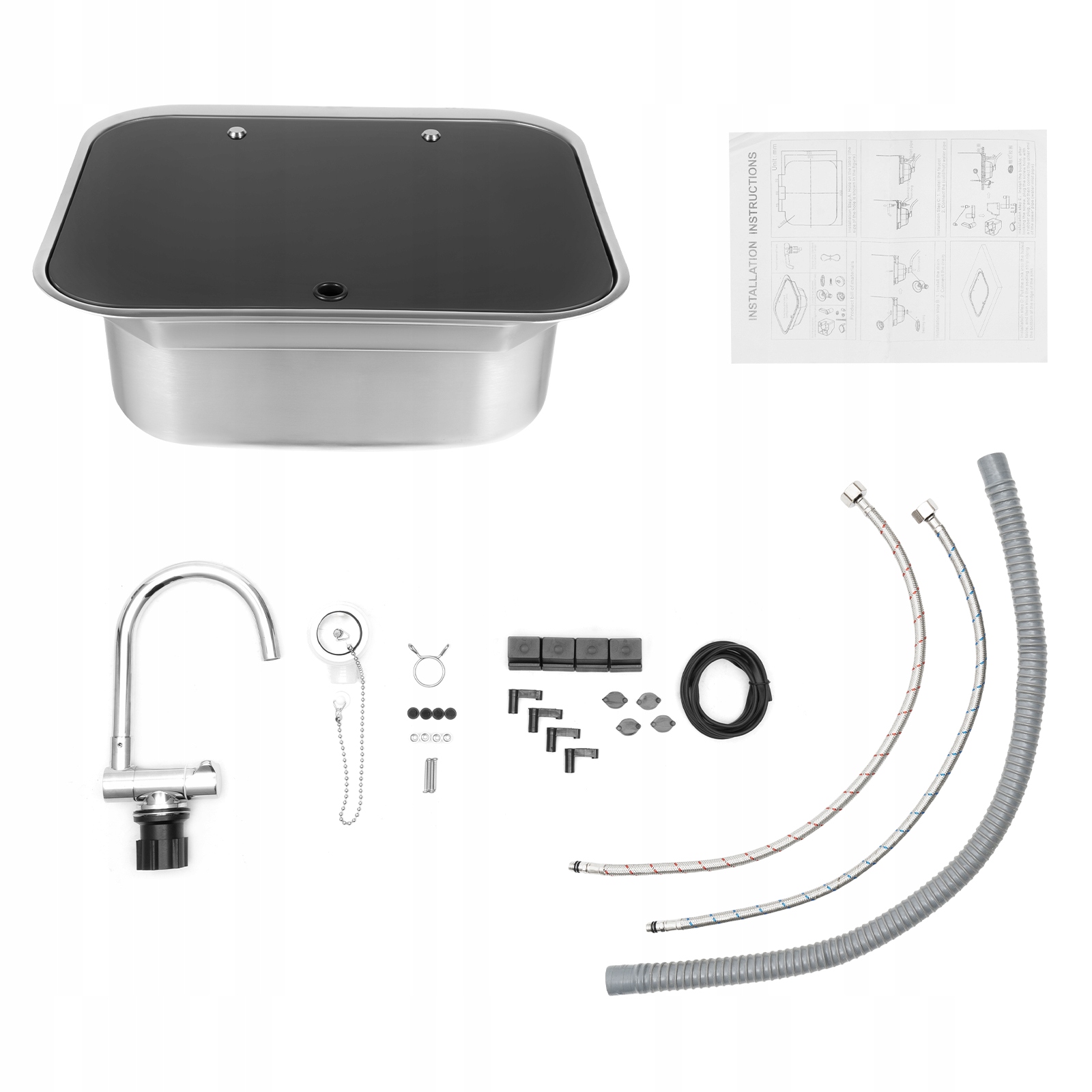 Modny wygląd: Srebrny zlewozmywak jest bardzo błyszczący i elegancki, a jego czarna pokrywa prezentuje się modnie i uniwersalnie. Czysty i zwięzły wygląd sprawia, że jest to nie tylko praktyczny pomocnik, ale także modny element wyposażenia kampera.
