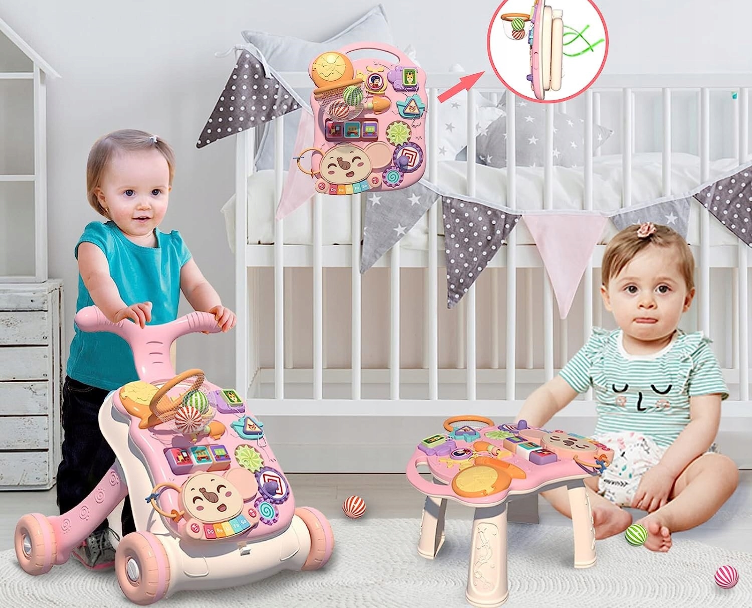 - Chodzik - pchacz - dzięki tej funkcji dziecko może rozpocząć naukę chodzenia