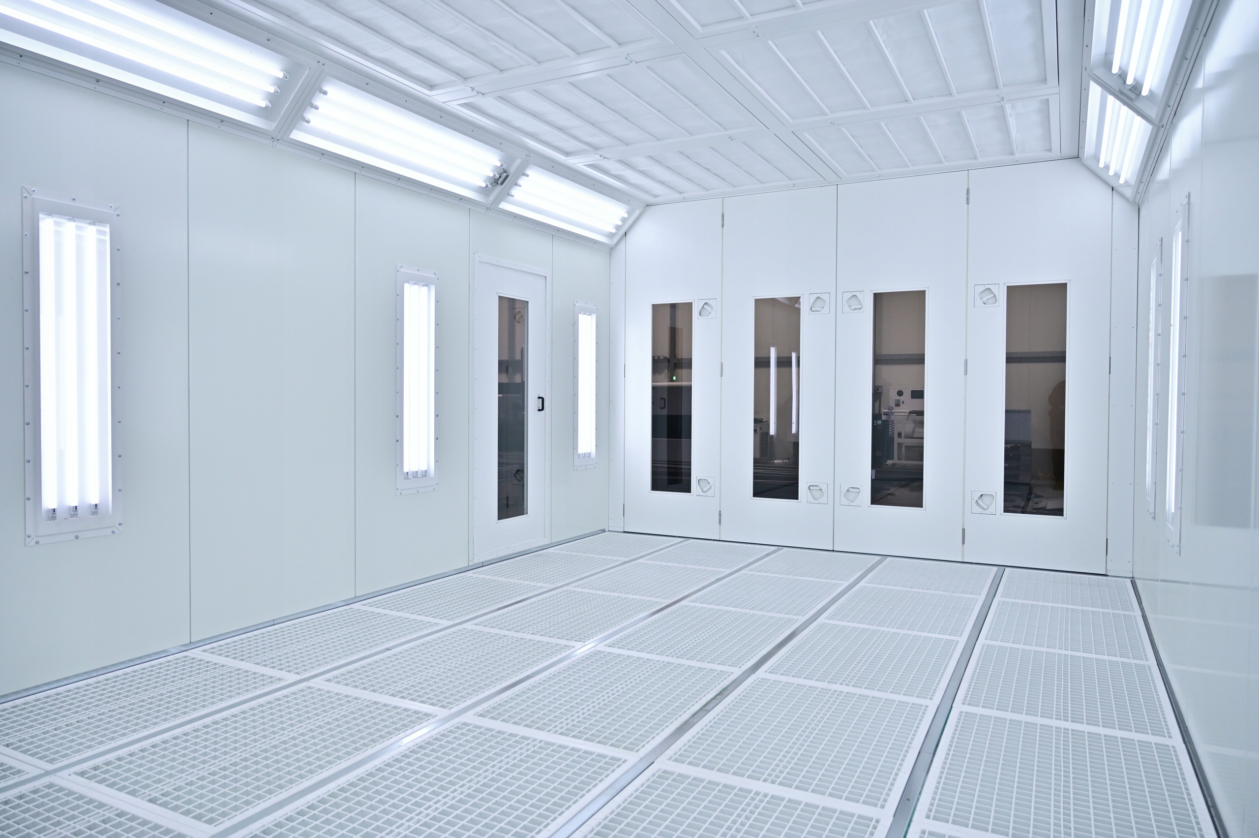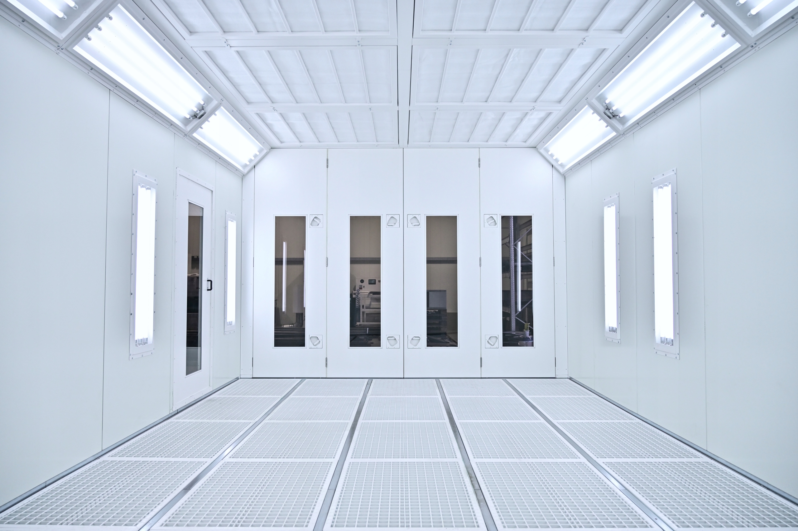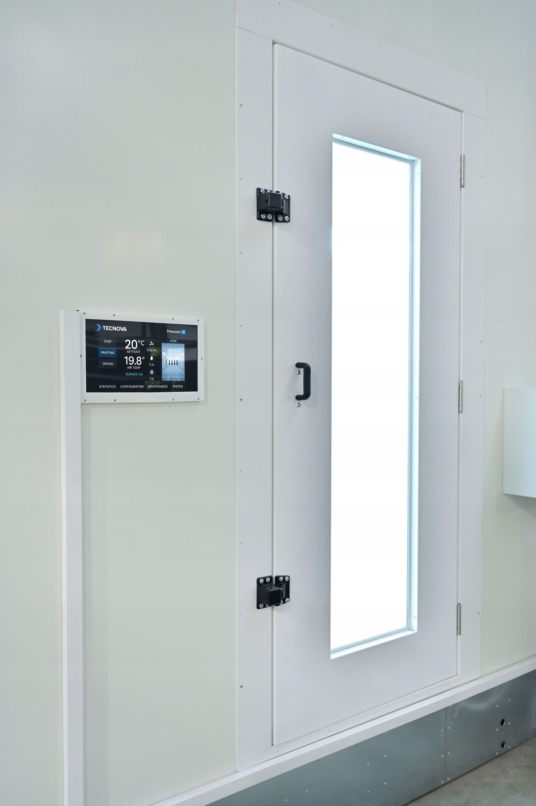 Oświetlenie kabiny stanowi programowalny system LED o barwie zbliżonej do światła dziennego, z regulacją współczynnika CRI oraz jasności. Oprawy umieszczone pod kątem 45° oraz w suficie eliminują strefy zacienione, ułatwiając kontrolę jakości nakładanych powłok. System grzewczy wykorzystuje wymiennik ciepła ze stali nierdzewnej (w wersji olejowej), a do wyboru dostępne są również warianty gazowe i elektryczne. Kabina osiąga temperaturę 60°C w czasie około 4–5 minut, a algorytmy zarządzania energią pozwalają ograniczyć zużycie nawet o 30%, szczególnie przy intensywnym cyklu pracy.