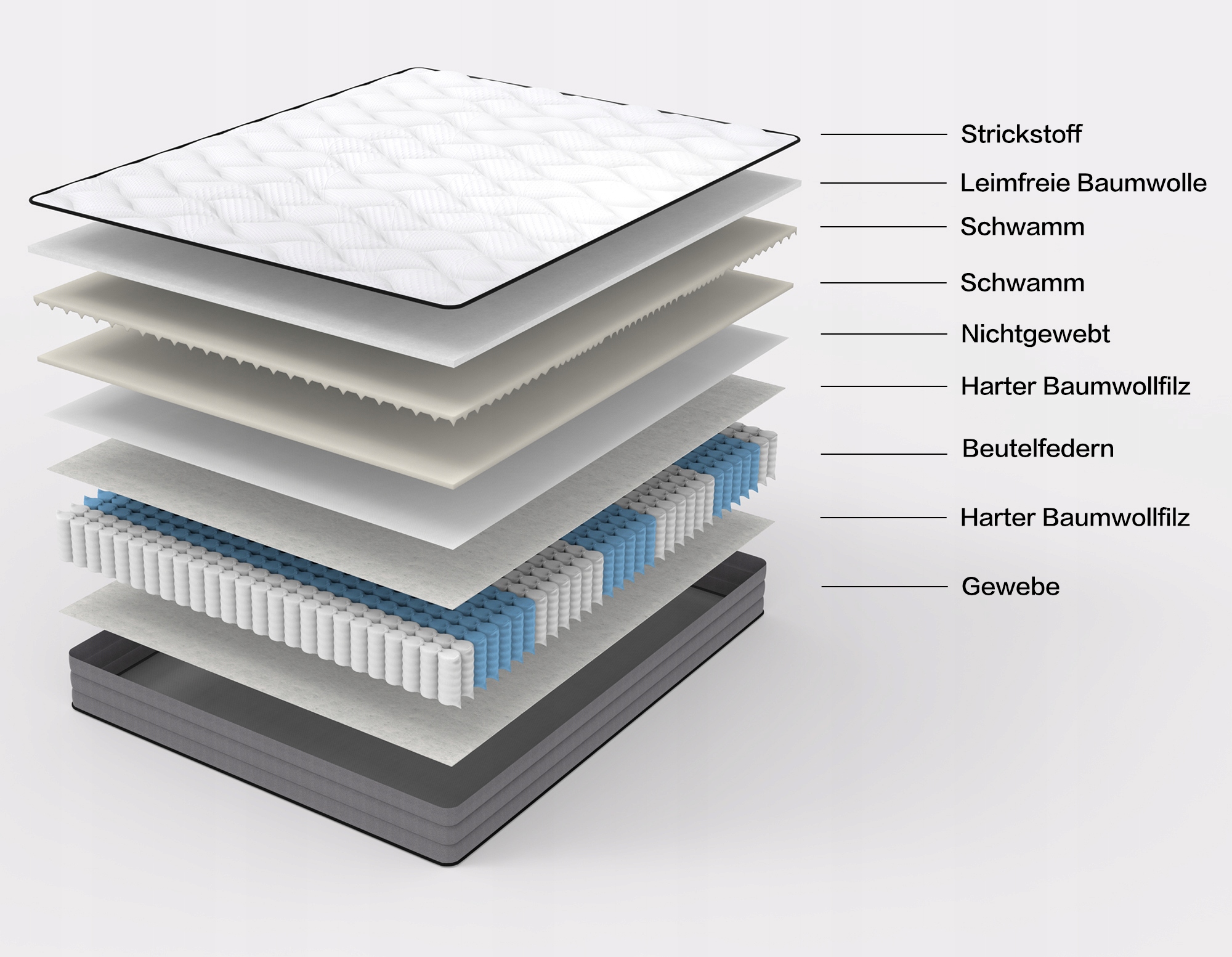 Materace wysokiej jakości Luksusowy materac kieszeniowy 90x200cm H3 20cm - Wyprodukowano w Chinach i z certyfikatem Oeko-TEX - Materac sprężynowy 90x200 z 1000 sprężyn i pokrowcem z lyocellu - Materac 7-strefowy 90x200 H3