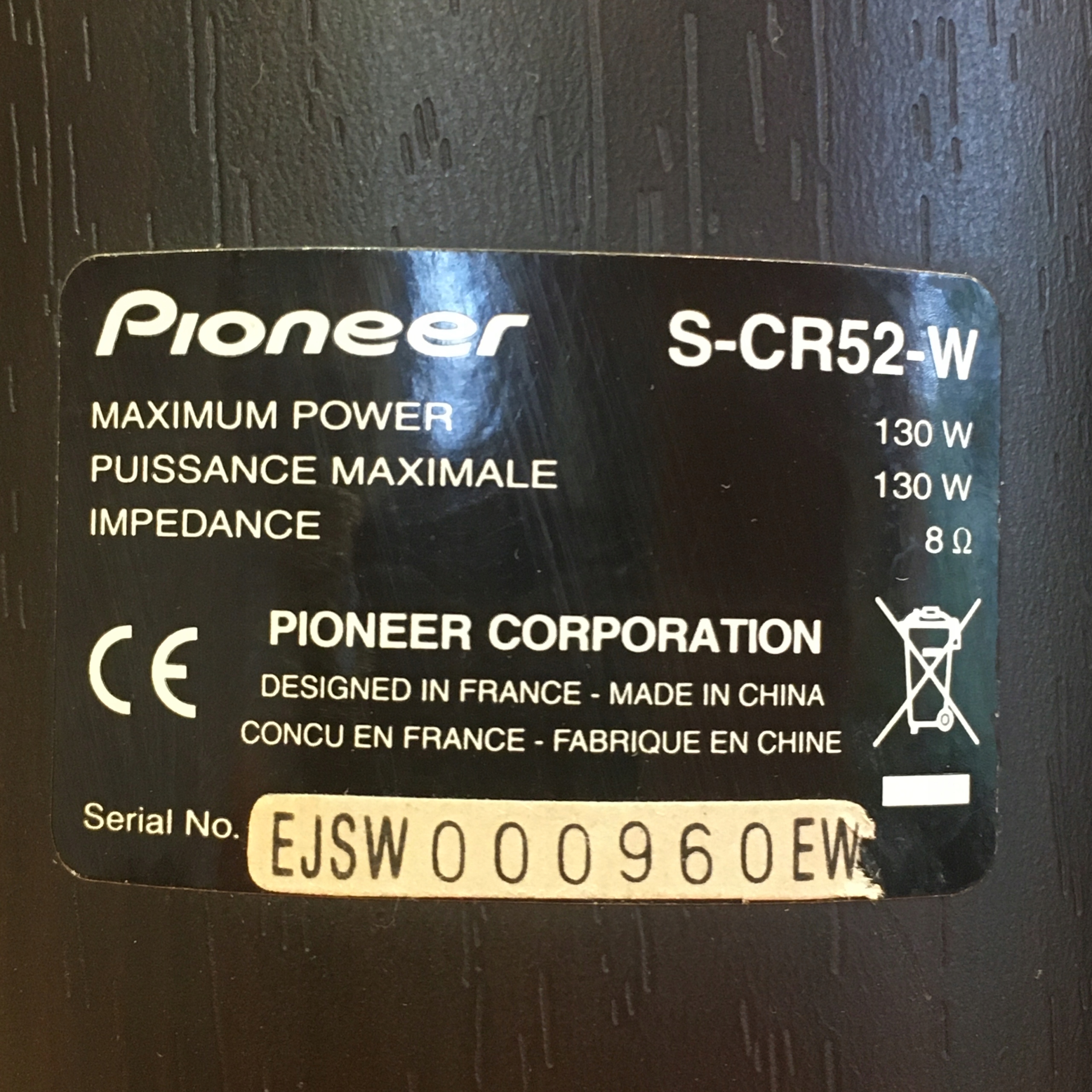 ### **Dane techniczne Pioneer S-CR52W**