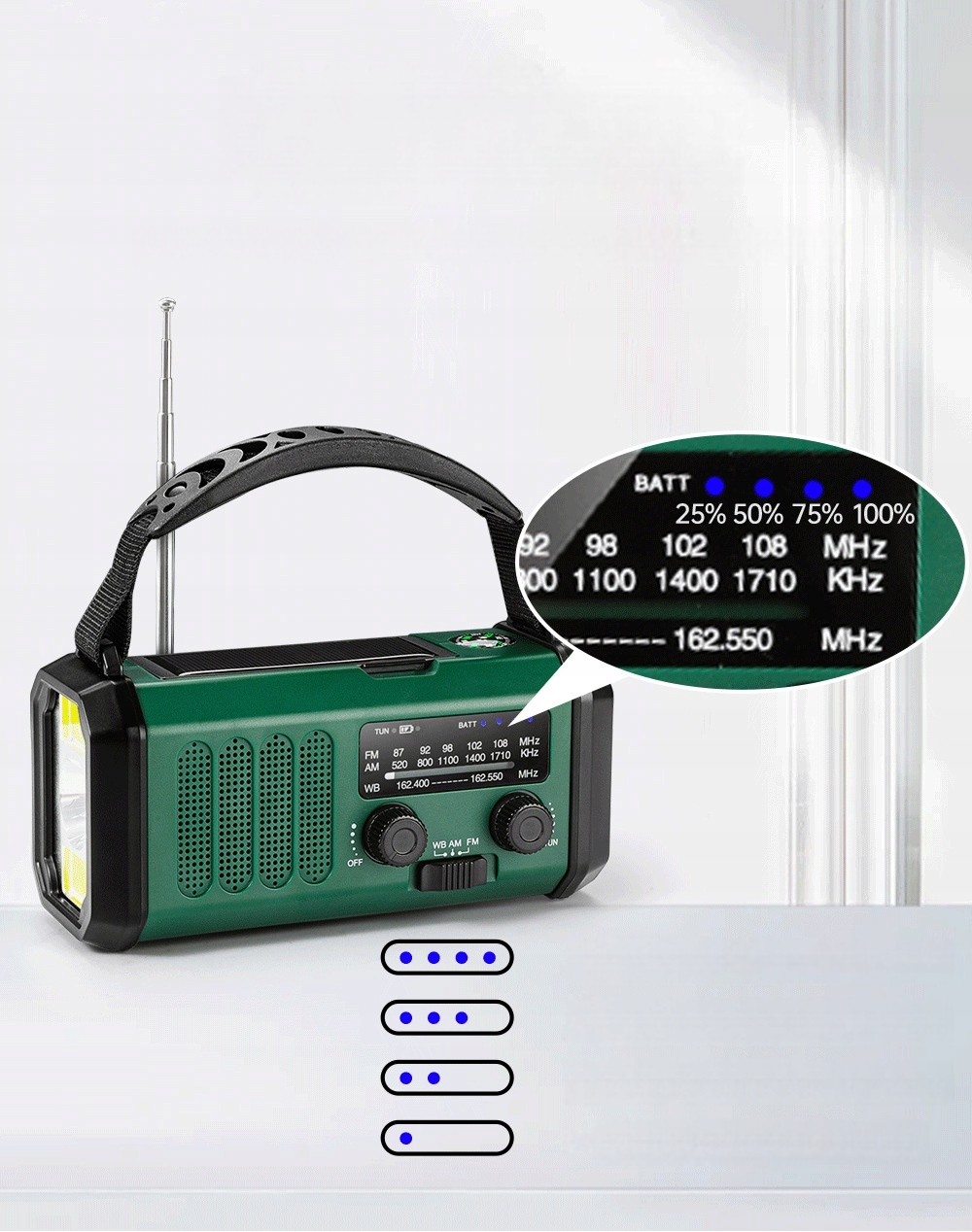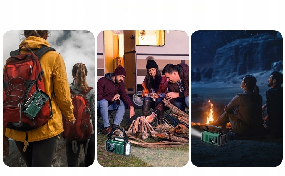 -Urządzenie o wielu funkcjach integruje radio, latarkę oraz powerbank, dając Ci całkowitą niezależność podczas kempingu, podróży lub sytuacji awaryjnych.