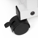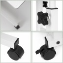 Kółka wyposażone są w praktyczną blokadę, która zapobiega przypadkowemu przesuwaniu się biurka podczas użytkowania. Dzięki temu konstrukcja pozostaje stabilna nawet podczas intensywnej pracy, pisania czy korzystania z laptopa. Mechanizm blokujący zapewnia pewność i komfort, niezależnie od powierzchni, na której stoi biurko - od paneli, przez płytki, aż po wykładzinę.