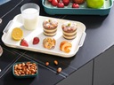 Tacka ma optymalny rozmiar, który pomieści filiżanki, talerzyki, szklanki czy przekąski. Lekko podniesione krawędzie chronią przed przypadkowym zsunięciem się naczyń, a ergonomiczne uchwyty po bokach ułatwiają przenoszenie. Dzięki temu możesz z łatwością podać śniadanie do łóżka lub przenieść napoje na balkon bez ryzyka rozlania.