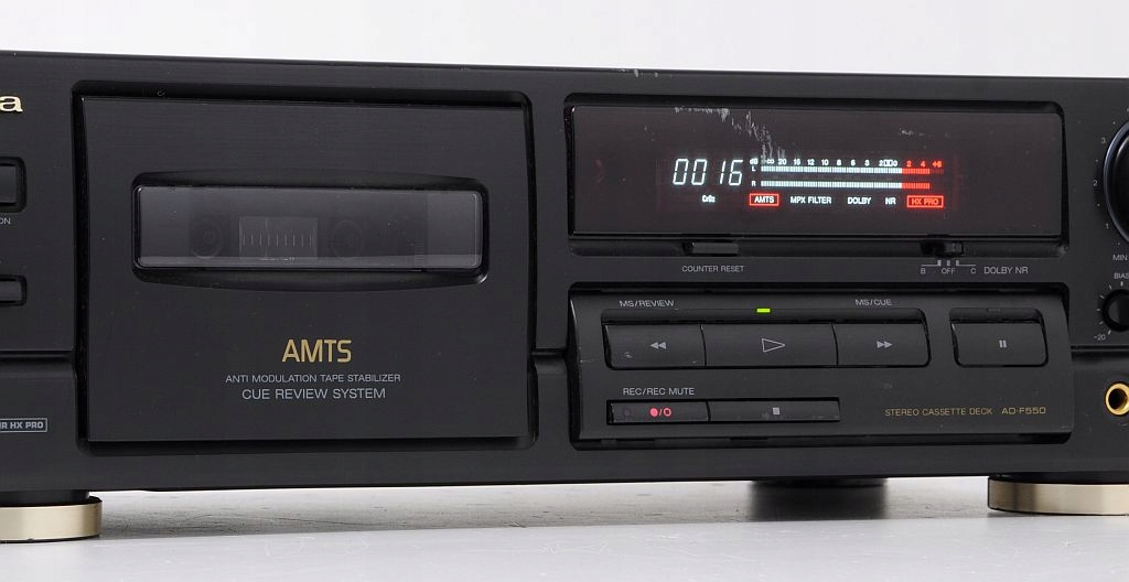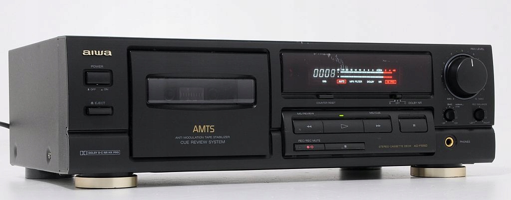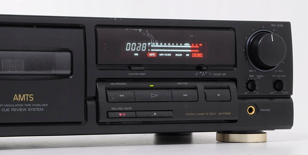 Bardzo udana konstrukcja cechująca się dobrej jakości dźwiękiem. Sprzęt jest wyposażony w układy redukcji szumów Dolby B,C. Deck posiada nowoczesny design. Doskonale prezentuje się czytelny wyświetlacz, wkomponowany w płytę przednią. AD-F550 to konstrukcja wizualnie zgrana, a przy tym masywna. Muzyka słuchana godzinami nie męczy, stare odkurzone kasety odkrywamy na nowo. Polecam ten magnetofon wszystkim którzy chcą delektować się swoimi nagraniami na kasetach, tym którzy potrzebują czegoś markowego magnetofonu w przystępnych pieniądzach.