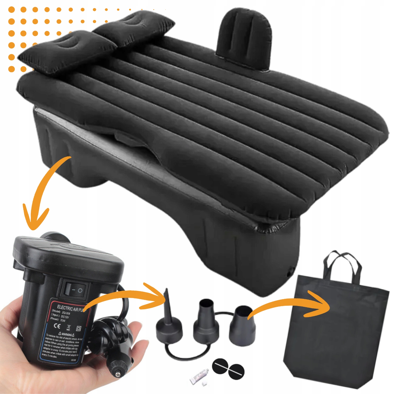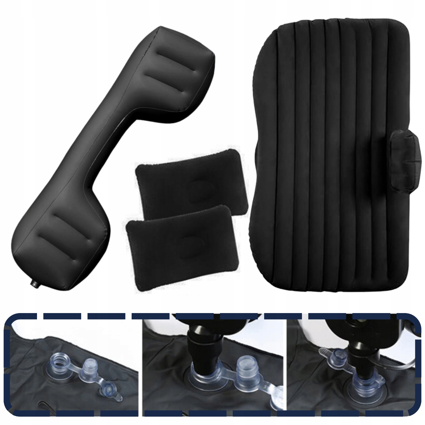 ✅ Zestaw został opakowany w wygodną torbę, w niej znajdziesz: materac, dwie poduszki, jedna podłużna poduszka do przestrzeni między kanapą, a przednimi siedzeniami, samochodową pompkę z 3 końcówkami oraz zestaw naprawczy.