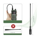 Odbiornik o dużej czułości umożliwia dokładniejsze dostrajanie częstotliwości oraz skuteczniejsze wychwytywanie sygnałów, nawet gdy w pobliżu działa wiele innych stacji na podobnych pasmach. Dzięki temu urządzenie lepiej radzi sobie z odbiorem transmisji o słabszej mocy, co ma ogromne znaczenie podczas prób nawiązania łączności na większych dystansach lub w wymagających warunkach terenowych. Antena nowej generacji gwarantuje lepsze przechwytywanie sygnału a przez to wyraźniejszy dźwięk podczas odbierania i nadawania.