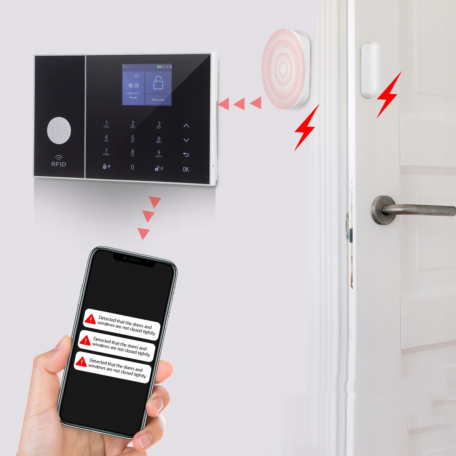 ✅Wzmocnij ochronę drzwi i okien w każdym domu dzięki naszemu bezprzewodowemu zestawowi alarmowemu. Ten system alarmowy bezpieczeństwa dla domu umożliwia zdalne sterowanie, powiadomienia push aplikacji mobilnej, dzięki czemu bezprzewodowy system alarmowy bezpieczeństwa w domu jest zarówno przyjazny dla użytkownika, jak i wszechstronny dla bezpieczeństwa mieszkania i potrzeb alarmowych w domu.