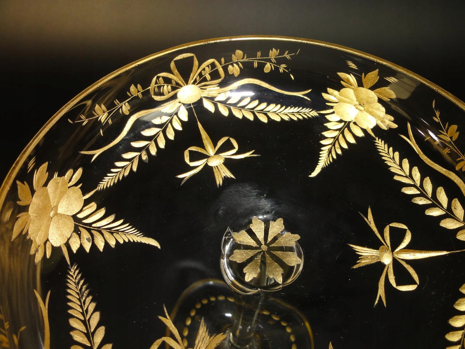 Moser antyczna patera - kielich na wysokiej nodze – szlifowane i złocone szkło ok.1900 r.