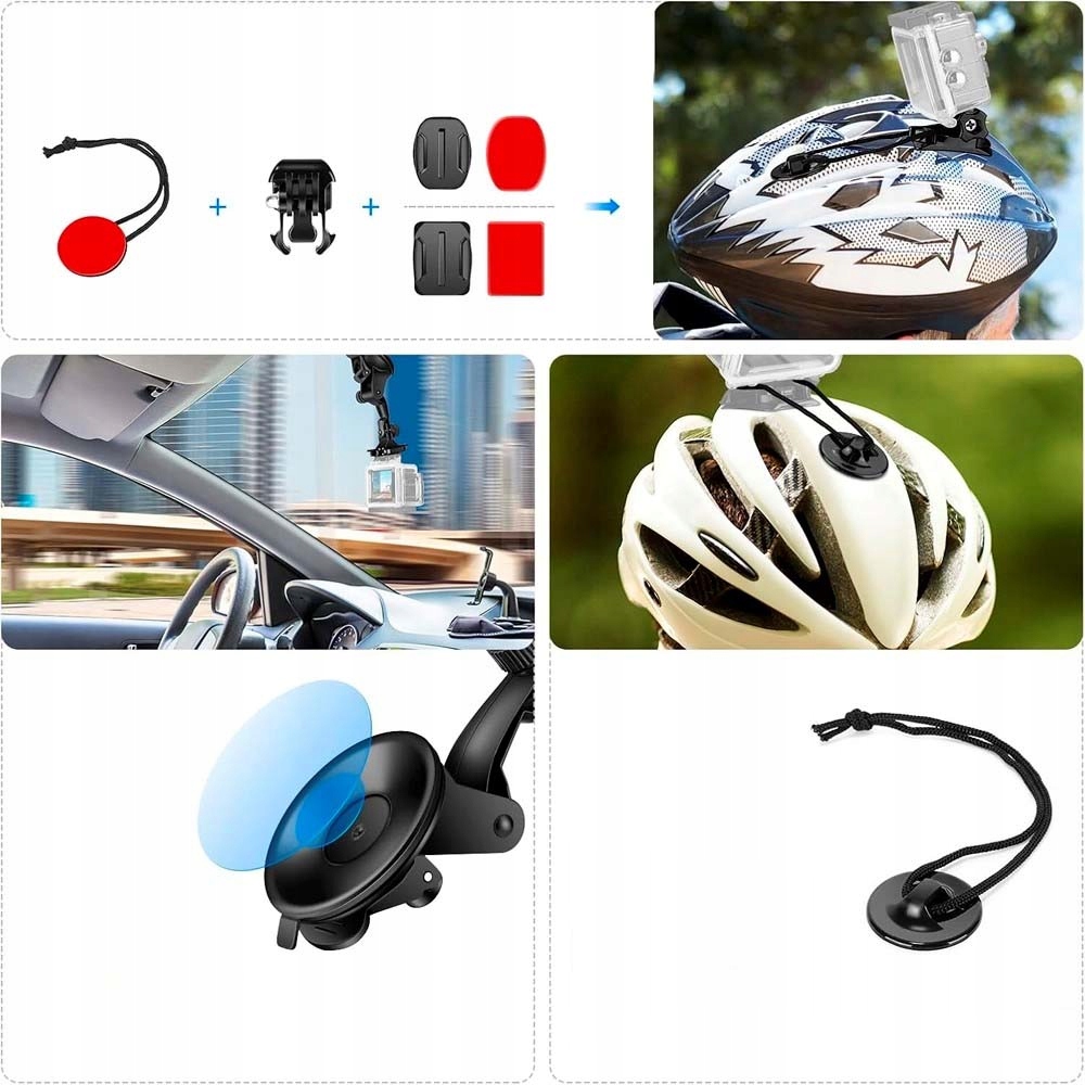 ✔️ Wszechstronny zestaw akcesoriów do kamer sportowych – niezbędny dla każdego pasjonata nagrywania w ruchu
