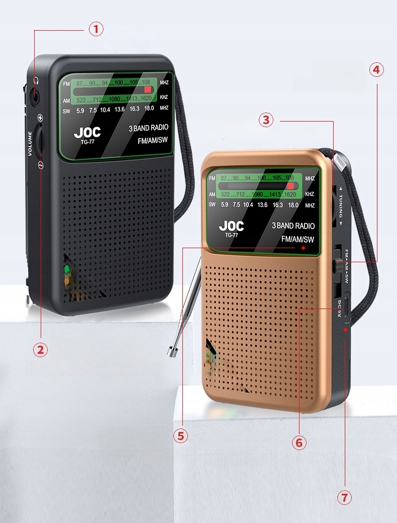DOSKONAŁY ODBIÓR - użyj układu DSP i ulepszonej długiej anteny z regulacją 360°, aby uzyskać silny odbiór. FM: 87-108 MHz, AM: 522-1620 kHz, SW: 5,9-18 MHz. Oznaczenia poszczególnych przycisków są wygrawerowane z tyłu radia krótkofalowego, dzięki czemu są trwalsze niż zwykłe nadruki.