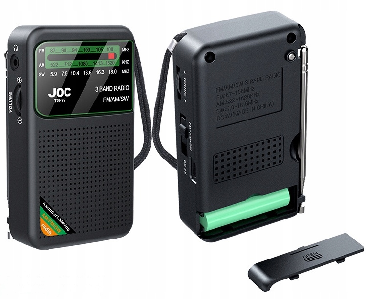 ŁATWE W UŻYCIU – Wygodne, przenośne radio tranzystorowe zasilane 2 bateriami AA (zawarty), łatwo dostępnymi w sprzedaży. Dzięki tylnej klipsowi i smyczy na nadgarstek można je wygodnie przechowywać i nosić wszędzie.