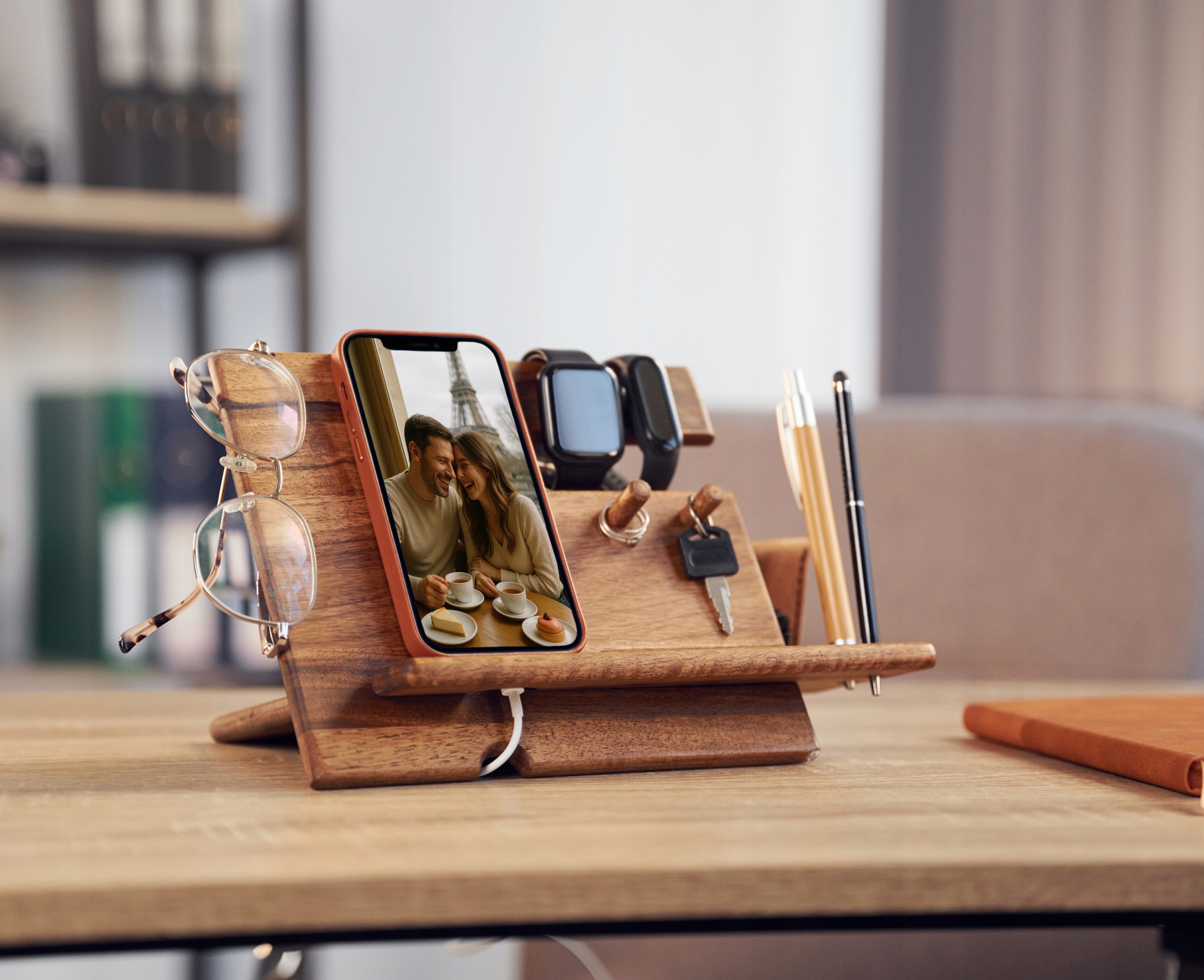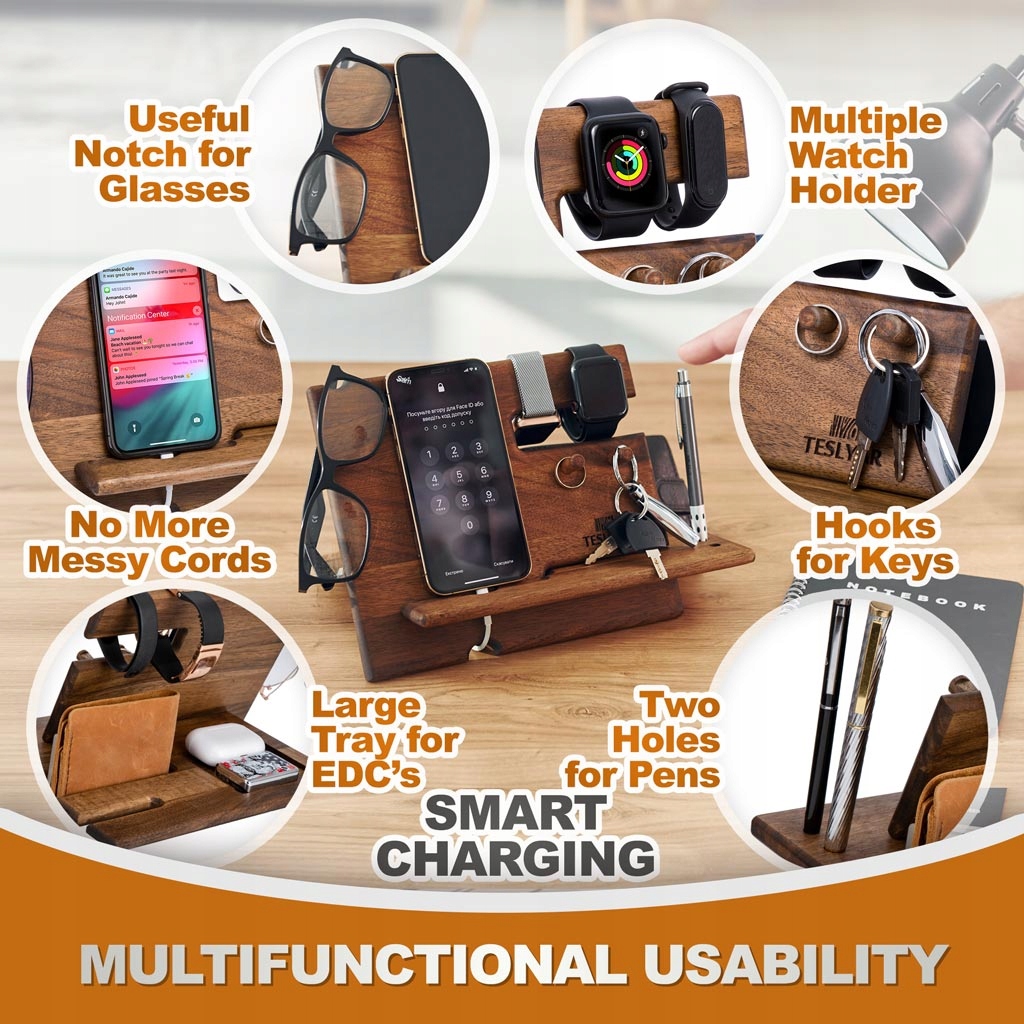 Praktyczny i kompaktowy organizer wykonany ręcznie z naturalnego drewna orzechowego w kolorze bronzo. Doskonale wpasowuje się w każde wnętrze – zarówno klasyczne, jak i nowoczesne. Zapewnia porządek i wygodny dostęp do najpotrzebniejszych rzeczy każdego dnia.