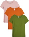 Zestaw 3 miękkich bluzek do karmienia piersią wykonanych z przyjemnego w dotyku materiału modal, który zapewnia komfort, elastyczność i przewiewność. Dzięki sprytnemu, dyskretnemu systemowi otwierania koszulki umożliwiają szybkie i wygodne karmienie zarówno w domu, jak i poza nim.