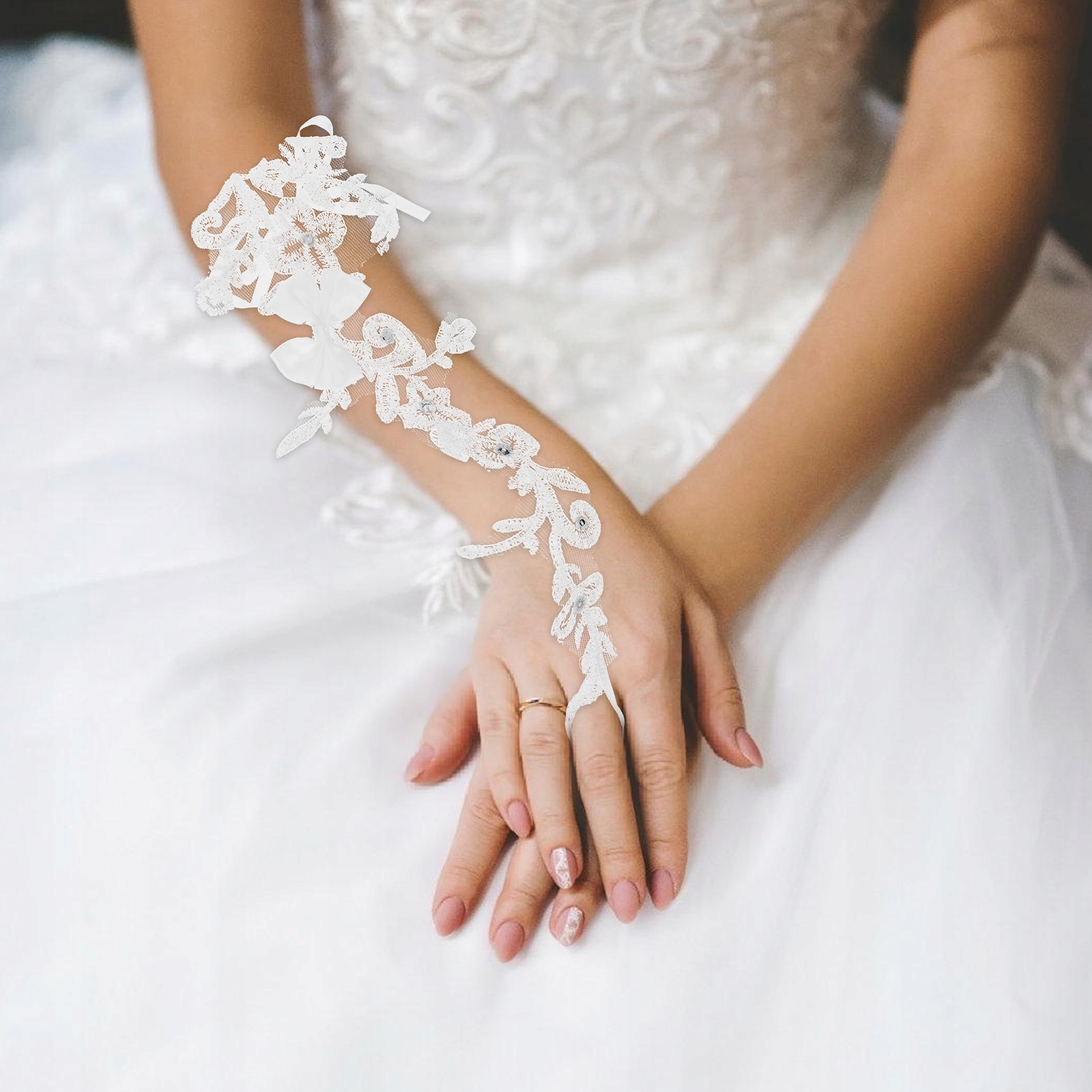 ✅Jest to para rękawiczek ślubnych wyprodukowanych z miłego materiału, bezpiecznego i trwałego do use.The koronkowy materiał sprawia, że te rękawiczki są bardziej charakterystyczne i piękne. Zaprojektowany z kokardką, która może podkreślić Twoją słodycz i piękno.