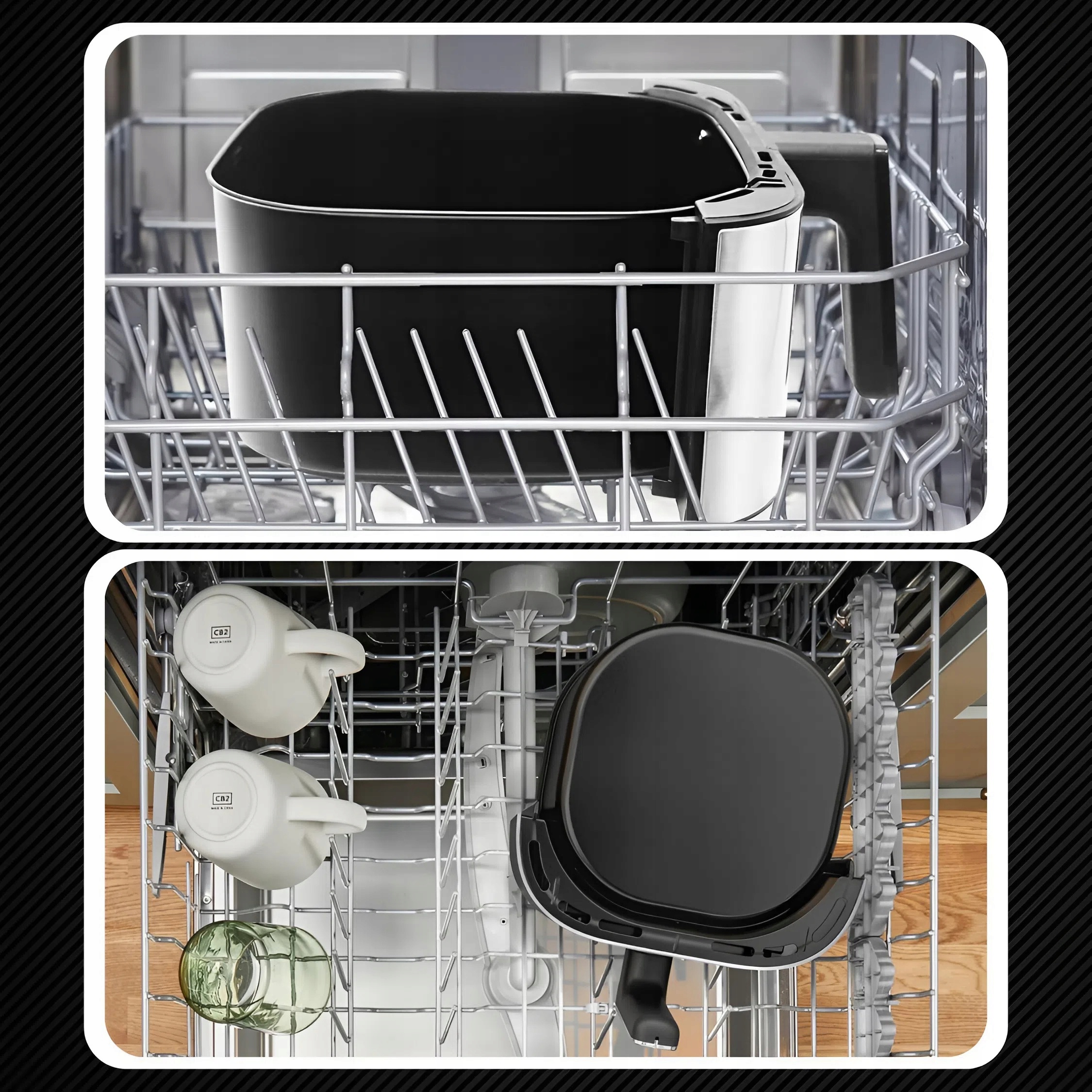 Wszystkie wyjmowane elementy kosza airfryera można bezpiecznie myć pod bieżącą wodą – zarówno ręcznie, jak i w zmywarce. Dzięki nieprzywierającej powłoce resztki jedzenia łatwo się usuwają, a higiena użytkowania zostaje zachowana na najwyższym poziomie. 💧