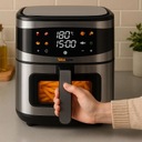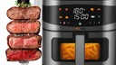 ➡️ Nasz airfryer wykorzystuje zaawansowaną technologię obiegu gorącego powietrza, która równomiernie otacza potrawę z każdej strony. Dzięki temu jedzenie staje się perfekcyjnie przypieczone z zewnątrz i soczyste w środku – bez konieczności używania oleju.