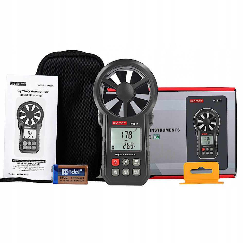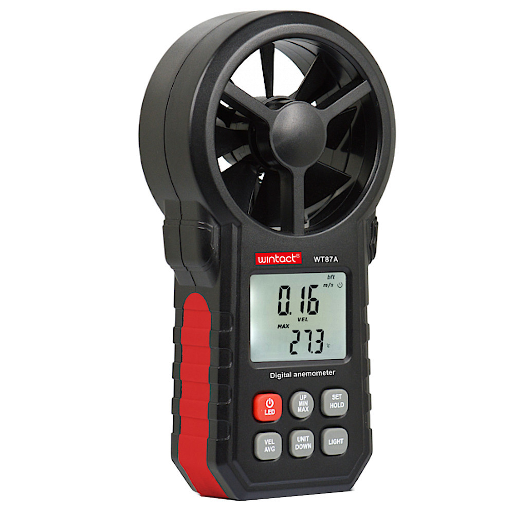 Anemometr WINTACK WT87A to skrzydełkowy wiatromierz, służący do mierzenia ruchów oraz temperatury powietrza. Konstrukcja urządzenia opiera się na 8-ramiennym wirniku, obracającym się pod wpływem ruchów powietrza. Wiatromierz znajduje zastosowanie w różnych gałęziach przemysłu, a także w sportach wyczynowych, takich jak żeglarstwo czy wspinaczka.