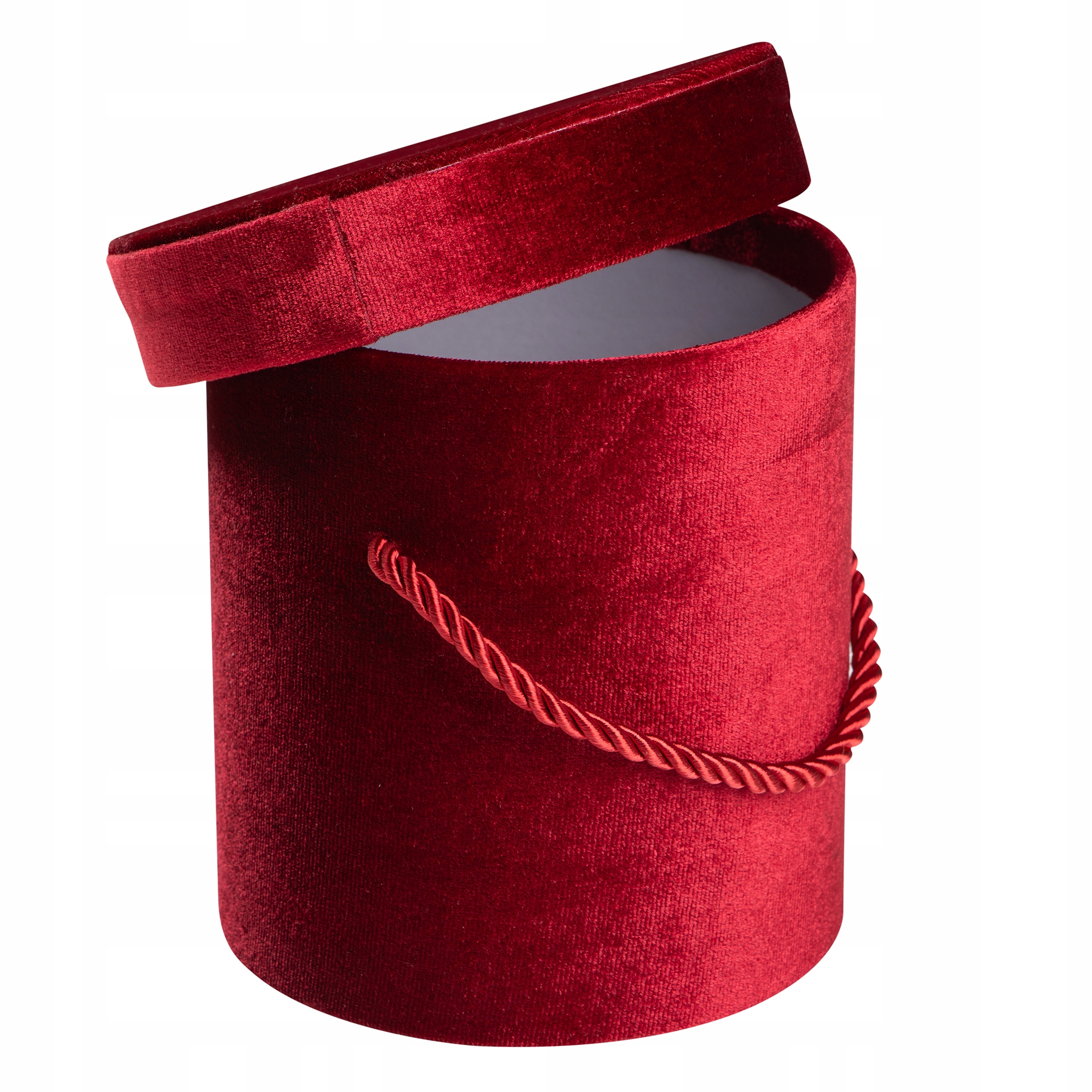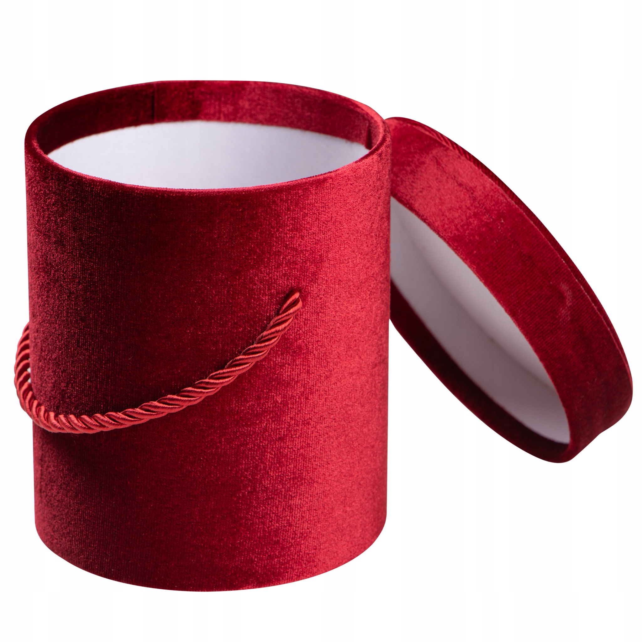 Welurowa powierzchnia z delikatnym połyskiem przyciąga wzrok i nadaje całości wyjątkowego, luksusowego charakteru. Wnętrze wykonane z białej tektury tworzy estetyczne tło dla zawartości, podkreślając jej walory wizualne. Satynowy sznurek w kolorze opakowania pełni funkcję ozdobną i praktyczną, ułatwiając przenoszenie lub aranżację. Kompaktowy, okrągły kształt sprawia, że pudełko z łatwością dopasujesz do wielu zastosowań – od dekoracji kwiatowej po eleganckie opakowanie na prezent.