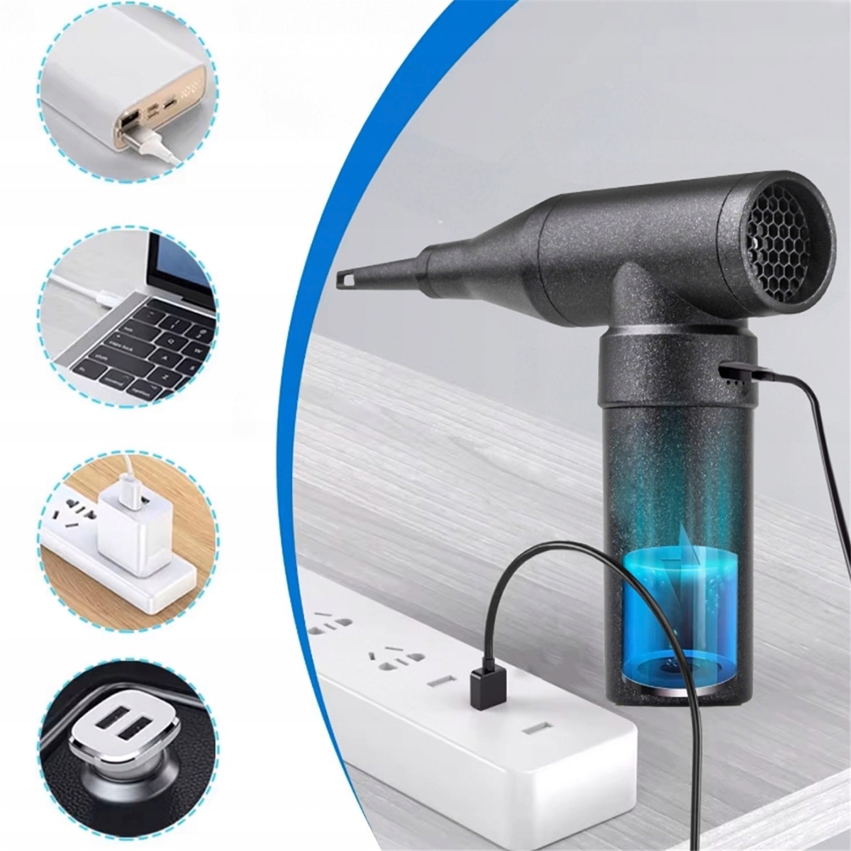 Ponieważ w zestawie znajduje się kabel ładujący USB typu C, możesz ładować dmuchawę na wiele sposobów.