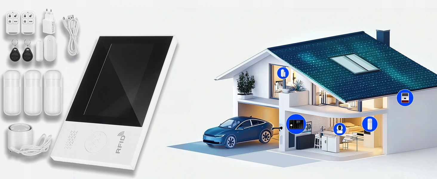 Łatwa instalacja i rozbudowa DIY: Główny host można zainstalować na pulpicie lub zamontować na ścianie. Z łatwością sparuj do 100 akcesoriów bezprzewodowych (czujniki, piloty, karty RFID), aby dostosować zasięg bezpieczeństwa drzwi, okien i pomieszczeń wewnętrznych.