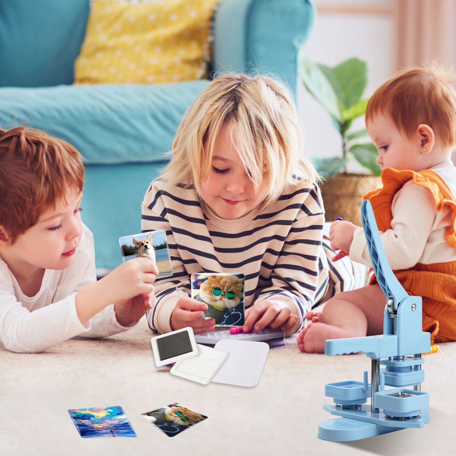 3. Kompletny zestaw do tworzenia odznak: w zestawie 1 * maszyna do tworzenia guzików; 100 zestawów materiałów do guzików; 100 sztuk pustych papierów; 1 * kwadratowa forma. Wystarczy narysować lub wydrukować swój wzór i zrobić guziki z rodziną!