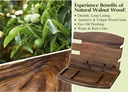 Wykonana z litego drewna orzecha, zabezpieczona nietoksycznym olejowoskiem, który podkreśla jego naturalną strukturę. Każdy egzemplarz ma unikalne usłojenie i odcień – to sprawia, że produkt jest wyjątkowy.