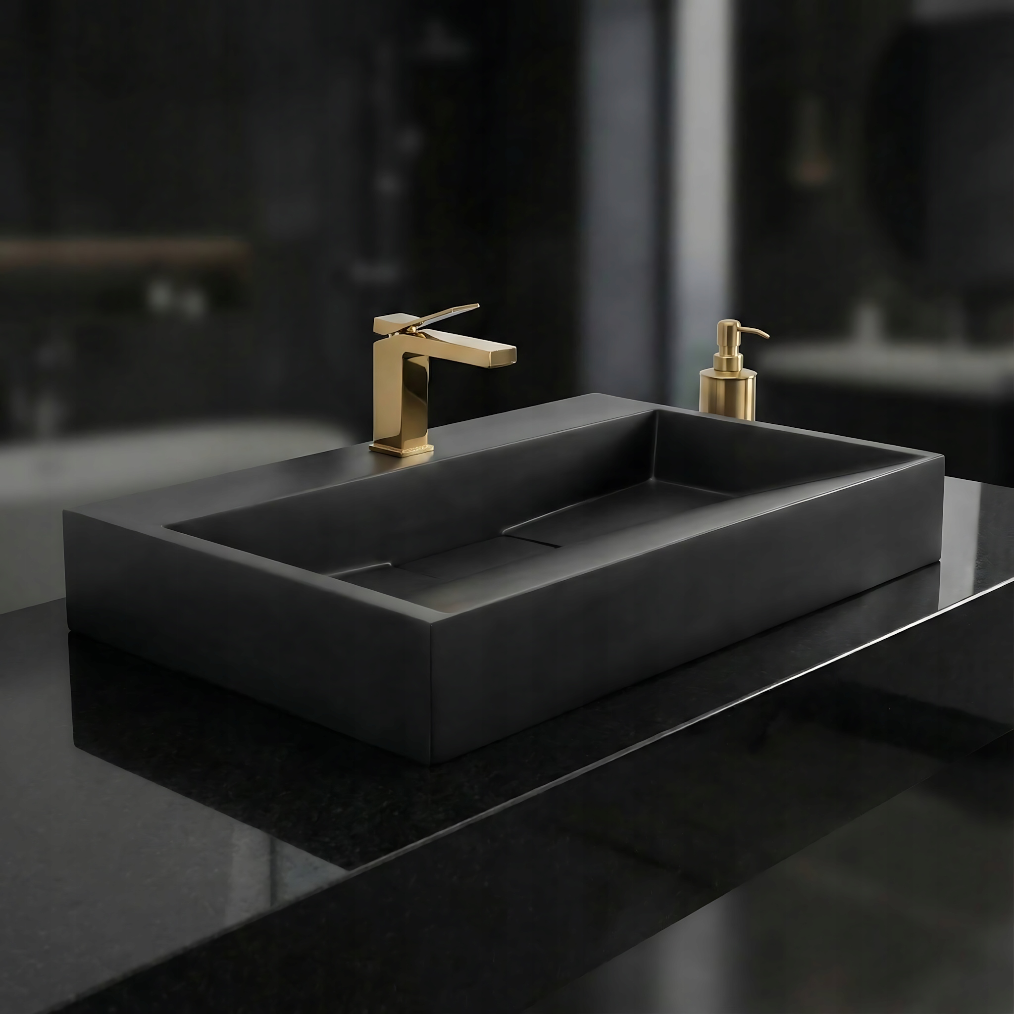 Umywalka została wykonana z konglomeratu (odlewu mineralnego). Jest to materiał znacznie bardziej zaawansowany niż tradycyjna ceramika. Cechuje się on: