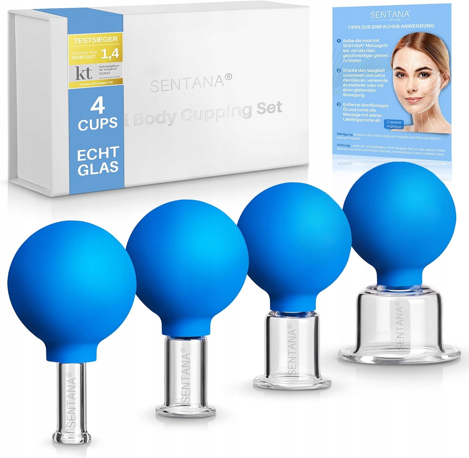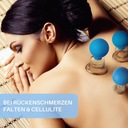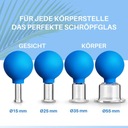 Masaż całego ciała – cztery praktyczne rozmiary o średnicy 15-25-35 i 55 mm pokrywają każde miejsce ciała – niezależnie od tego, czy chodzi o twarz, plecy czy nogę, masz odpowiednie bańki szklane