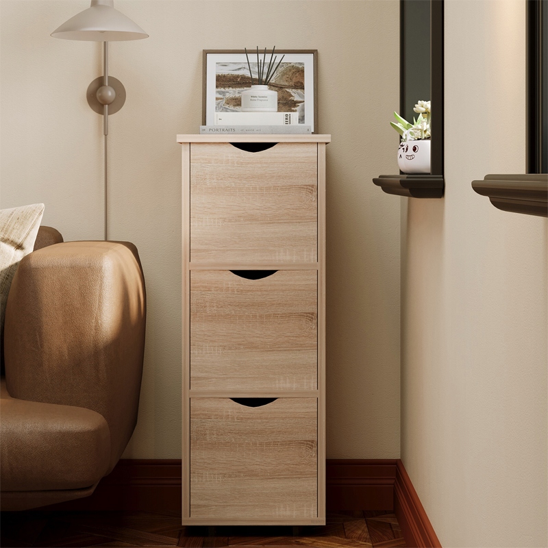 Stylowa i funkcjonalna szafka słupek w kolorze rustykalnego dębu to idealne rozwiązanie do salonu, sypialni, łazienki czy przedpokoju. Wąska konstrukcja pozwala ustawić mebel nawet w ograniczonej przestrzeni, a pojemne szuflady zapewniają wygodne przechowywanie