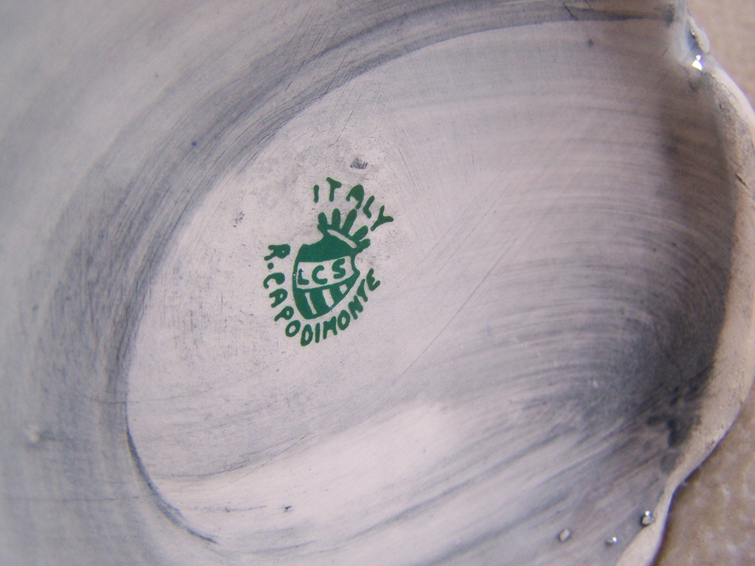 Elegancki, dekoracyjny wazon wykonany z ceramiki, sygnowany Capodimonte Italy. Pochodzący najpewniej z połowy XX wieku, charakteryzuje się wyjątkowym kunsztem wykonania oraz bogatą ornamentyką.