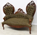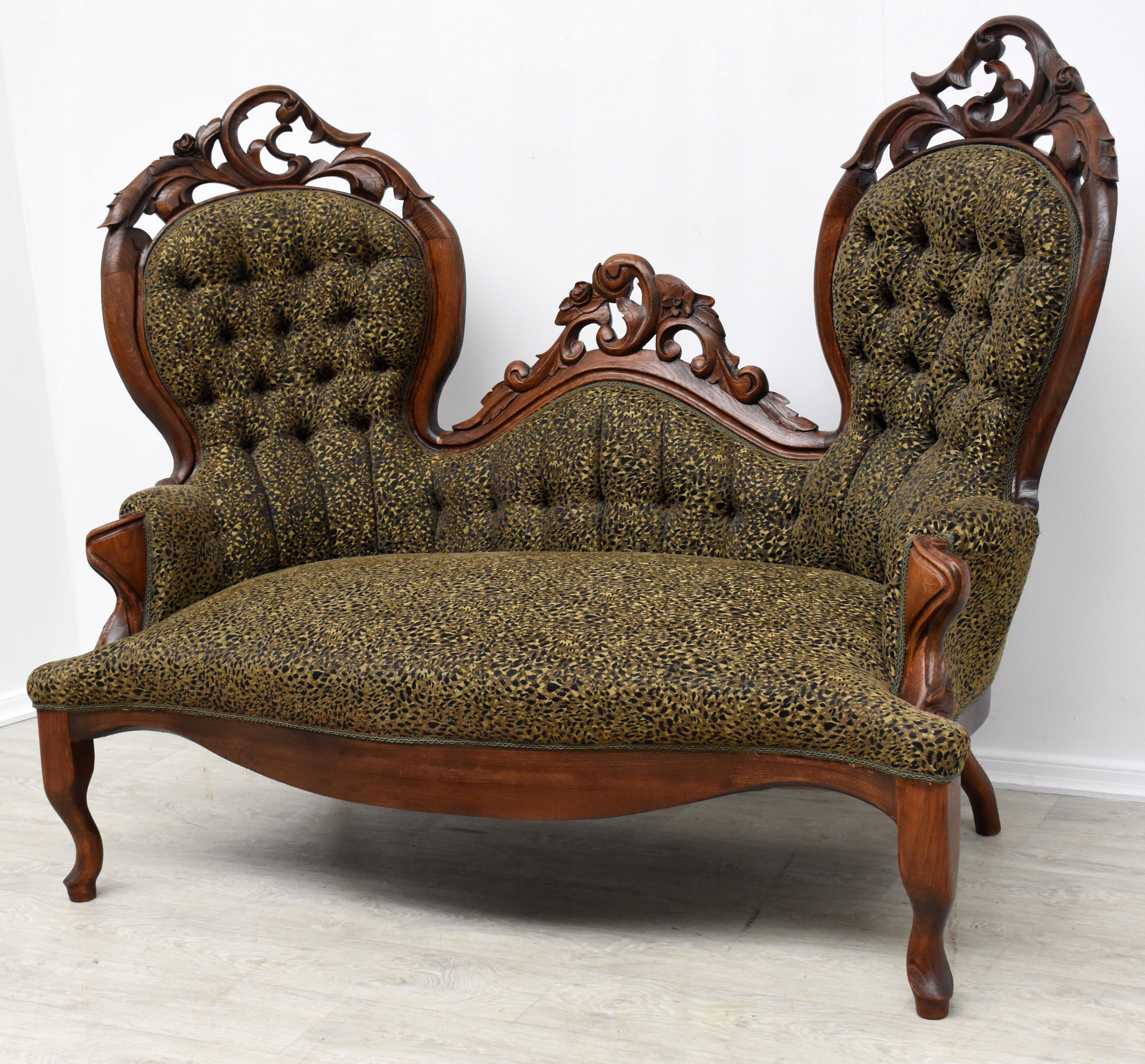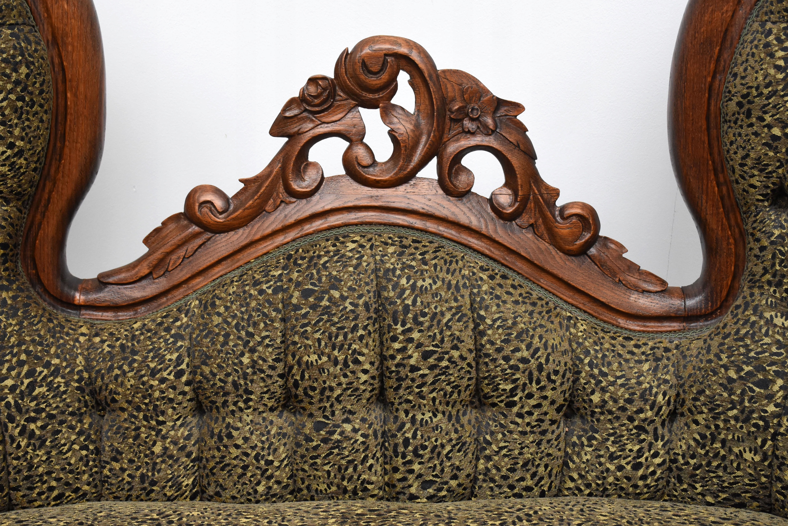Szezlon, pochodzenie Francja, całość osadzona na stelażu dębowym, materiał tkanina oryginalny stan, posiada przepiękne rzeźbienia, wiek około 50 lat. Posiada przepiękne rzeźbienia, styl ludwikowski