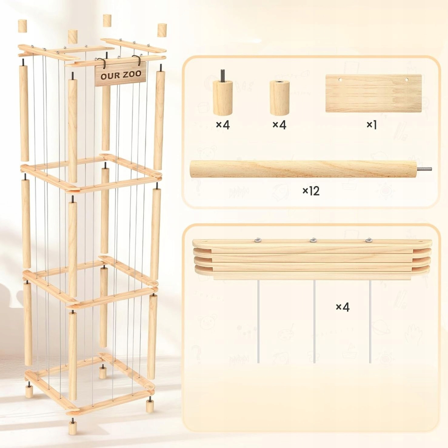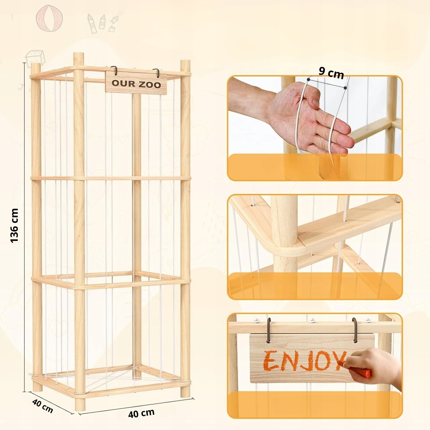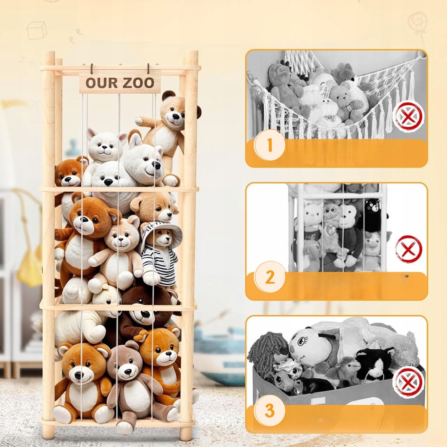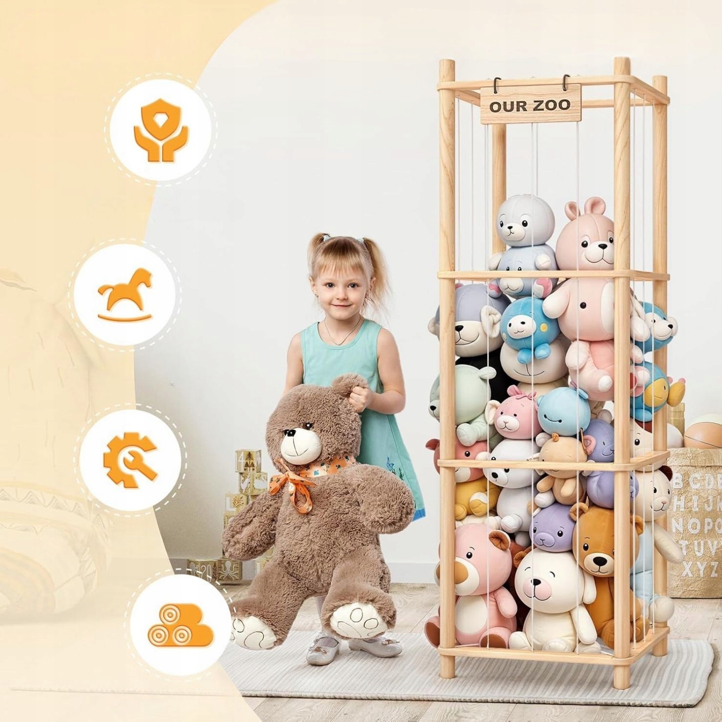 ✅ Organizer „OUR ZOO” eliminuje te problemy – zabawki są uporządkowane, widoczne i zawsze pod ręką.