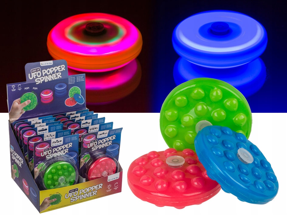 Ufo Popper Spinner LEDPrzedstawiamy Ufo Popper Spinner z diodą LED - ekscytującą i nowoczesną zabawkę, która zapewni Ci mnóstwo radości i rozrywki. Ten innowacyjny spinner to idealny sposób na odstresowanie się i bawienie się w oryginalny sposób.Ufo Popper Spinner ma średnicę około 9,5 cm, co czyni go wygodnym do trzymania i łatwym w użyciu. Jego ergonomiczny design zapewnia przyjemne wrażenia podczas kręcenia, a solidna konstrukcja gwarantuje trwałość i długotrwałe użytkowanie.Najbardziej porywającym elementem tego produktu jest dioda LED, która daje efekt świetlny podczas obrotu. Dzięki diodzie LED Ufo Popper Spinner świeci w różnych kolorach, tworząc fascynujące wzory i efekty świetlne. Jest to nie tylko atrakcyjne wizualnie, ale również stwarza niesamowitą atmosferę i dodaje magii do Twojej zabawy.Ufo Popper Spinner jest prosty w użyciu - wystarczy umieścić go na palcu i kręcić. Możesz go kręcić w różnych kierunkach, eksperymentować z prędkością i techniką, aby osiągnąć najbardziej imponujące efekty. To nie tylko doskonała rozrywka, ale również świetny sposób na rozwijanie zdolności motorycznych i koncentracji.Gadżet w skrócie:- Ufo Popper Spinner- materiał: tworzywo TPR- opakowanie: blister z zawieszką