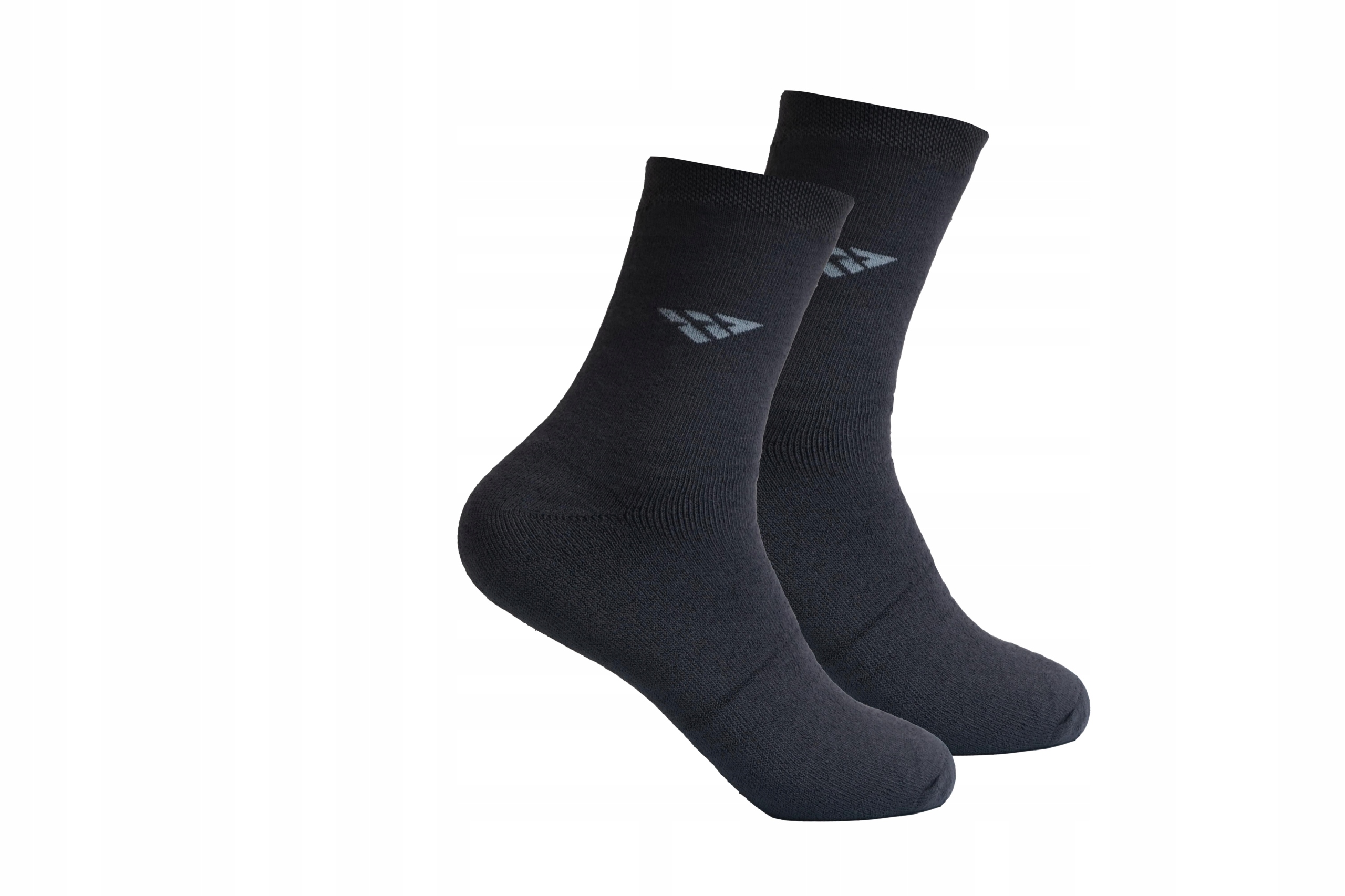 Skarpety wykonane są z grubszego materiału typu THERMO, który doskonale zatrzymuje ciepło, a jednocześnie pozwala skórze oddychać. Idealne na zimowe spacery, do pracy w chłodnym otoczeniu czy na wyjazdy w góry.