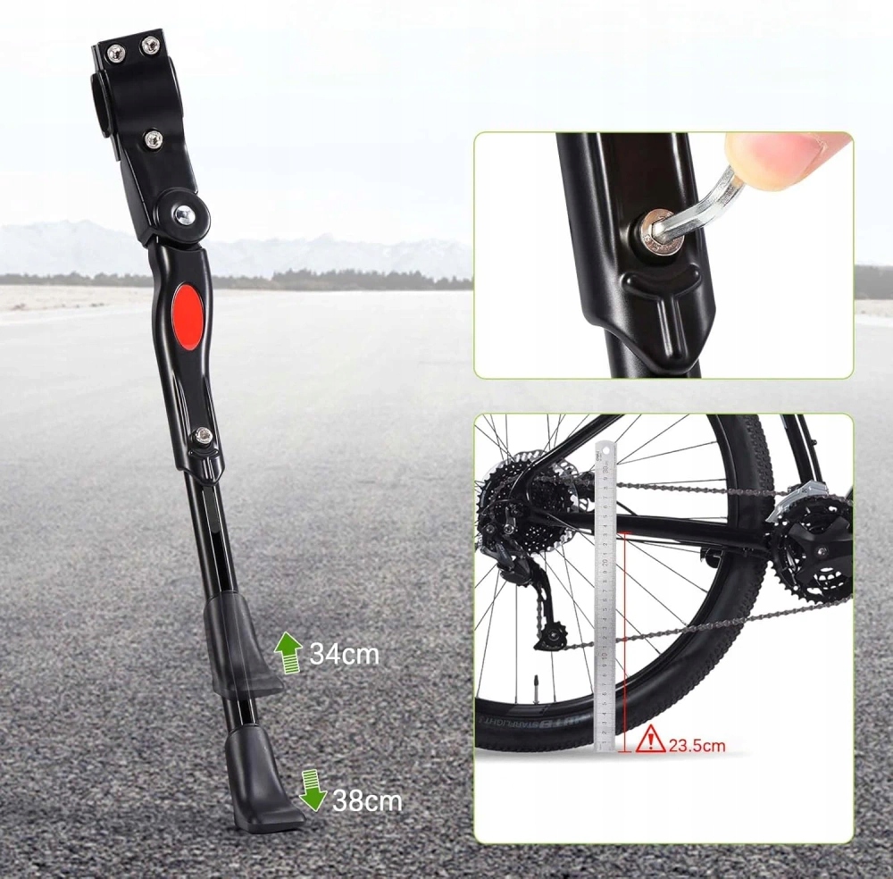 Wykonana z wytrzymałego stopu aluminium, jest lekka, a zarazem odporna na korozję i uszkodzenia. Posiada regulowaną długość, co pozwala na dopasowanie do rowerów o różnych rozmiarach kół (zazwyczaj od 24 do 28 cali). Wyposażona w antypoślizgową stopkę, gwarantuje stabilność na różnorodnym podłożu.