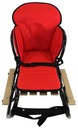Materacyk jest stabilnie zamocowany za pomocą dwóch pasków zakładanych od spodu na deski przy oparciu jest zamocowany na rzep a pas bezpieczeństwa owijamy wokół oparcia .