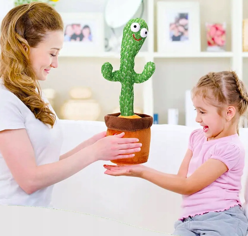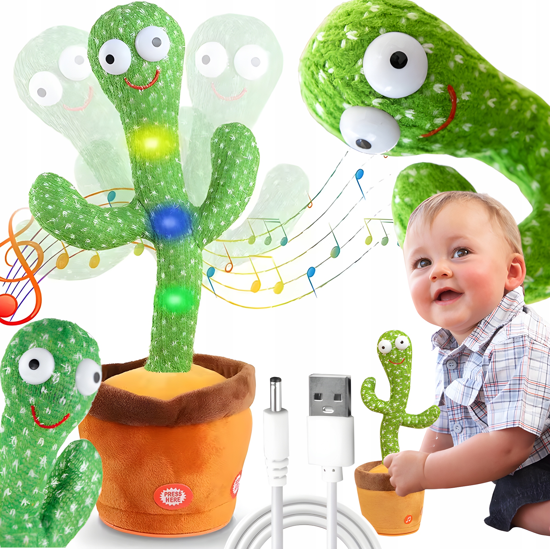 Stwórz radość, śmiech i niesamowitą zabawę w domu dzięki interaktywnemu tańczącemu kaktusowi LED, który śpiewa, tańczy, powtarza słowa i świeci różnokolorowymi światłami. To jedna z najbardziej uwielbianych zabawek ostatnich lat – idealna zarówno dla najmłodszych dzieci, jak i dla dorosłych, którzy chcą poprawić humor sobie lub bliskim. Kaktus reaguje na dźwięk, rusza się w rytm muzyki i zachęca malucha do ruchu, śmiechu oraz wspólnej zabawy.