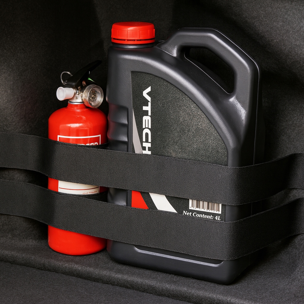 Dzięki dołączonym materiałowym naklejkom samoprzylepnym uchwyt można zamocować nie tylko na tapicerowanych powierzchniach bagażnika, ale również na twardych, plastikowych ściankach. Pozwala to zastosować uchwyt w praktycznie każdym typie bagażnika, zapewniając stabilne i pewne mocowanie bez konieczności wiercenia czy używania narzędzi.