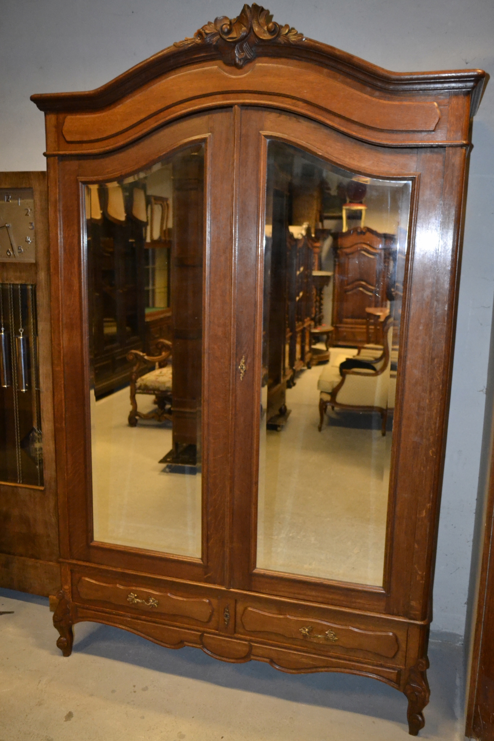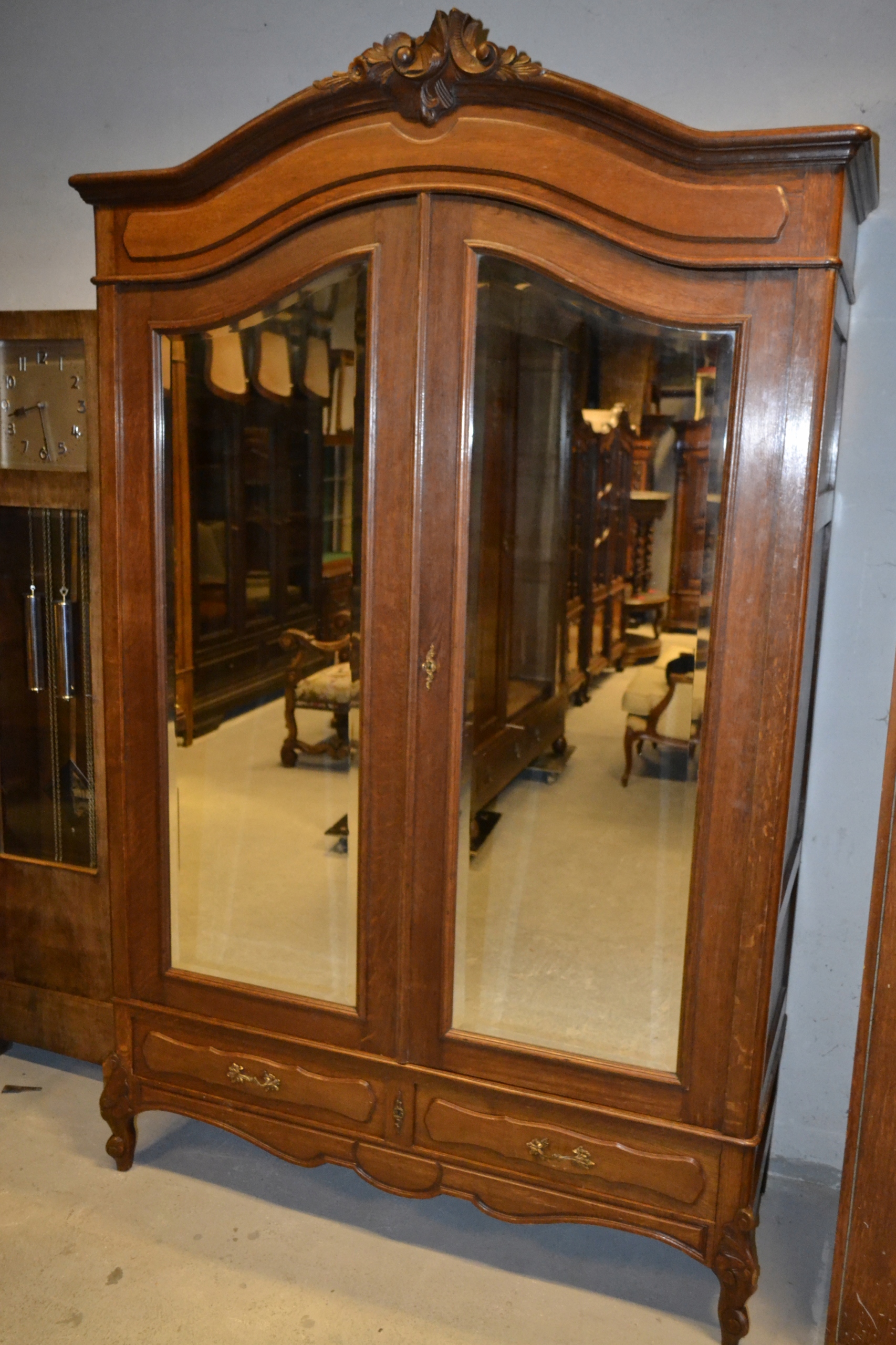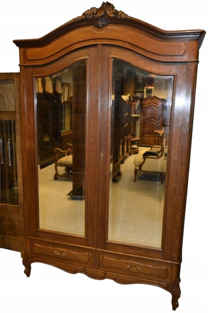 piękna, solidna szafa z lustrami . szafa jest wykonana z litego dębu . mebel jest gustownie zdobiony ,posiada ozdobne okucia . na koronie jest modyfikowany motyw rocaille . rzeźba został zmniejszona .może była za wysoka ,może komuś się nie podobała ...tak czy inaczej zmniejszona i wygląda dobrze . mebel jest rozkładany do transportu . elegancki mebel do aranżacji wnętrz ,które maja stworzyć ciepłą ,elegancką i ponadczasową atmosferę. stan używany, bardzo dobry . występują niewielkie ślady używania ,lustra mają niedoskonałości związane z upływem czasu ,ale nie ma nic co by szpeciło szafa wygląda wspaniale